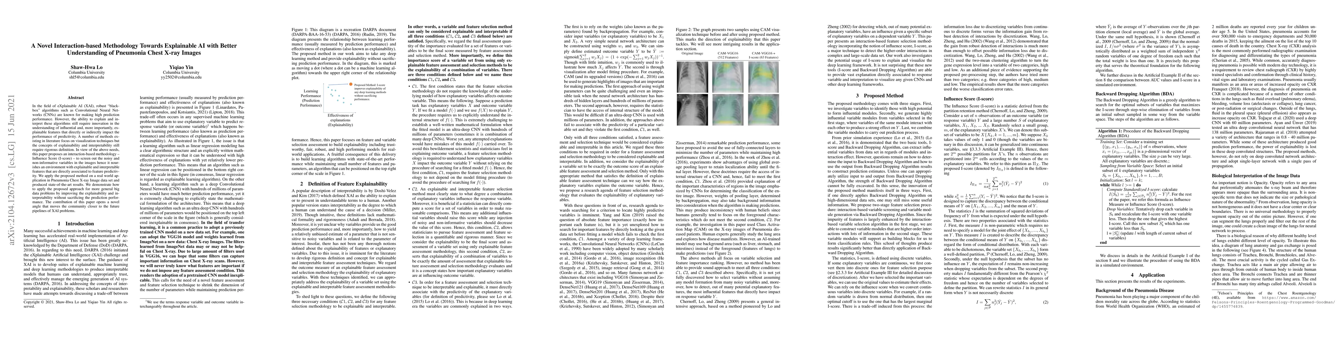 In the field of eXplainable AI (XAI), robust "blackbox" algorithms such as Convolutional Neural Networks (CNNs) are known for making high prediction performance. However, the ability to explain and interpret these algorithms still require innovation in the understanding of influential and, more importantly, explainable features that directly or indirectly impact the performance of predictivity. A number of methods existing in literature focus on visualization techniques but the concepts of explainability and interpretability still require rigorous definition. In view of the above needs, this paper proposes an interaction-based methodology -- Influence Score (I-score) -- to screen out the noisy and non-informative variables in the images hence it nourishes an environment with explainable and interpretable features that are directly associated to feature predictivity. We apply the proposed method on a real world application in Pneumonia Chest X-ray Image data set and produced state-of-the-art results. We demonstrate how to apply the proposed approach for more general big data problems by improving the explainability and interpretability without sacrificing the prediction performance. The contribution of this paper opens a novel angle that moves the community closer to the future pipelines of XAI problems.