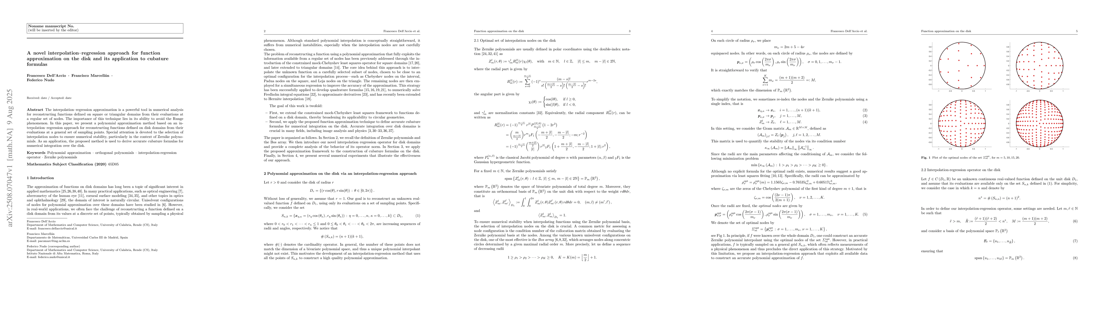 The paper introduces a novel interpolation-regression approach for reconstructing functions on disk domains using Zernike polynomials, ensuring numerical stability and avoiding the Runge phenomenon.