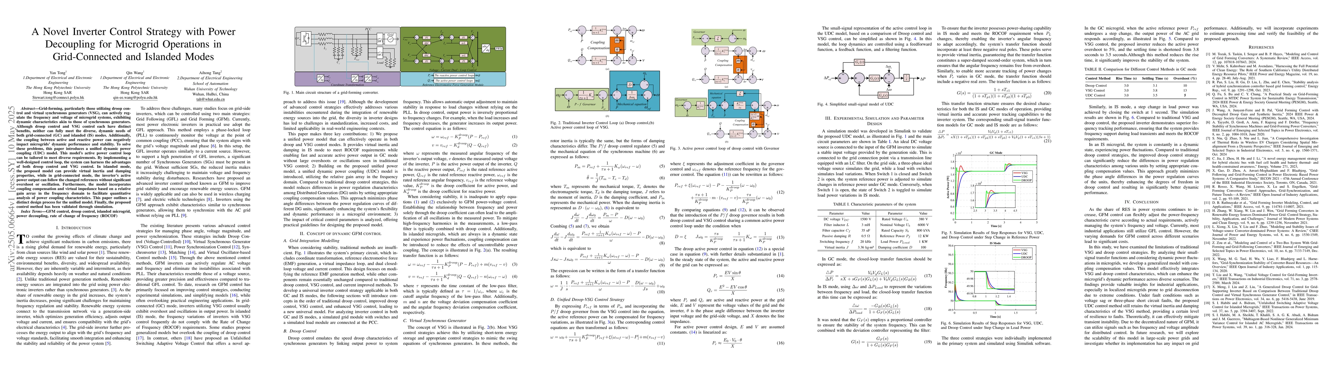 The paper introduces a unified dynamic power coupling (UDC) model for microgrid operations, combining advantages of droop control and virtual synchronous generator (VSG) control through tailored active power control loops and coupling compensation.