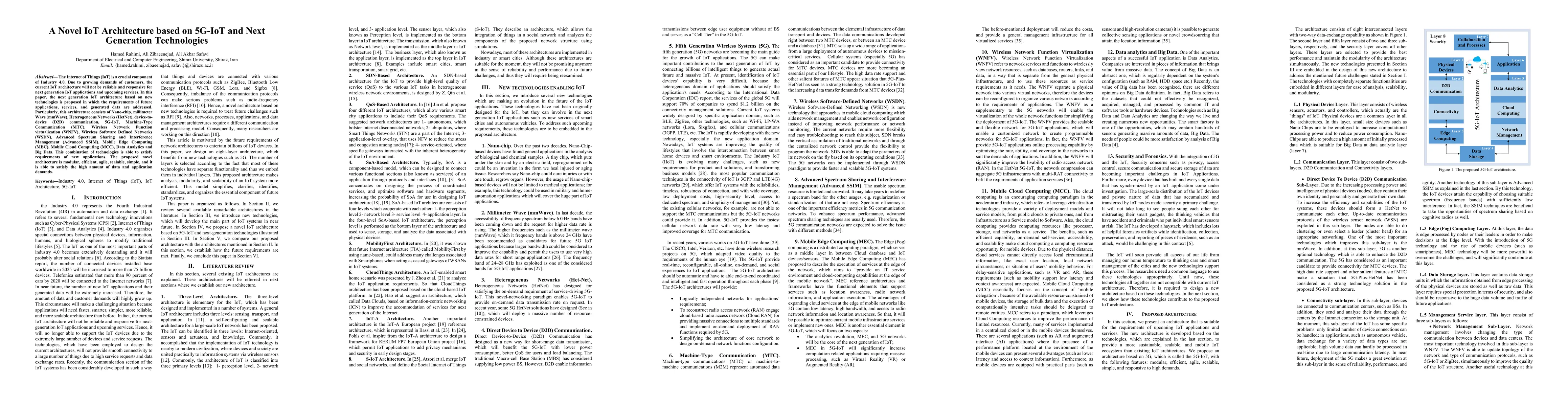 This paper proposes a next-generation IoT architecture incorporating 5G-IoT, Nano-chips, mmWave, HetNet, and Mobile Edge Computing to meet future application demands. The architecture is modular, efficient, and scalable, addressing high data and application requirements.