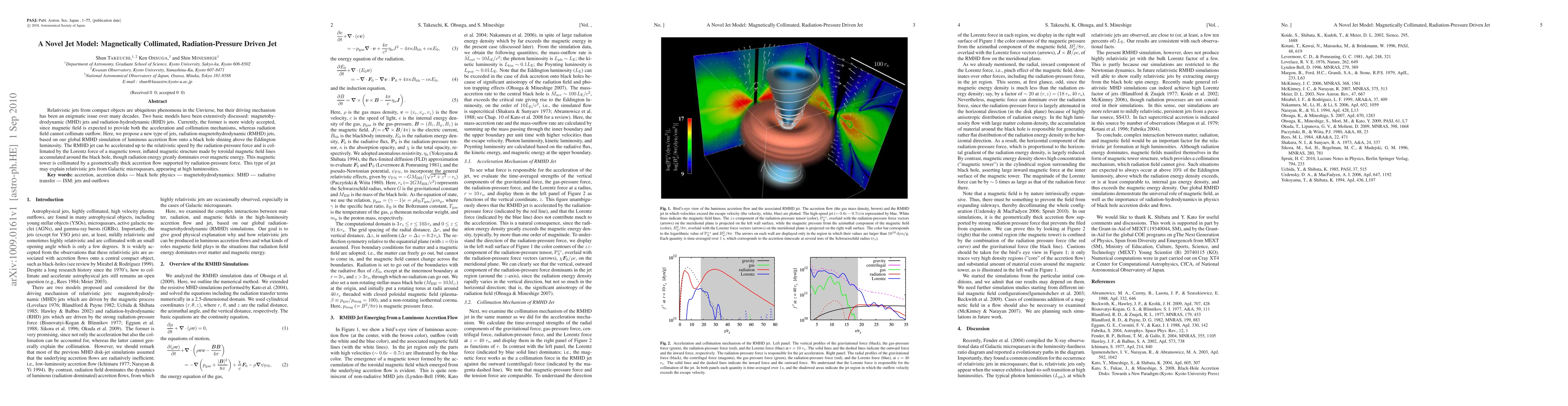 This paper proposes a novel radiation-magnetohydrodynamic (RMHD) jet model where relativistic jets are driven by radiation pressure and collimated by magnetic fields, challenging the traditional MHD-dominated models. The RMHD jet is driven by radiation-pressure force and collimated by a magnetic tower, potentially explaining high-luminosity relativistic jets in Galactic microquasars.