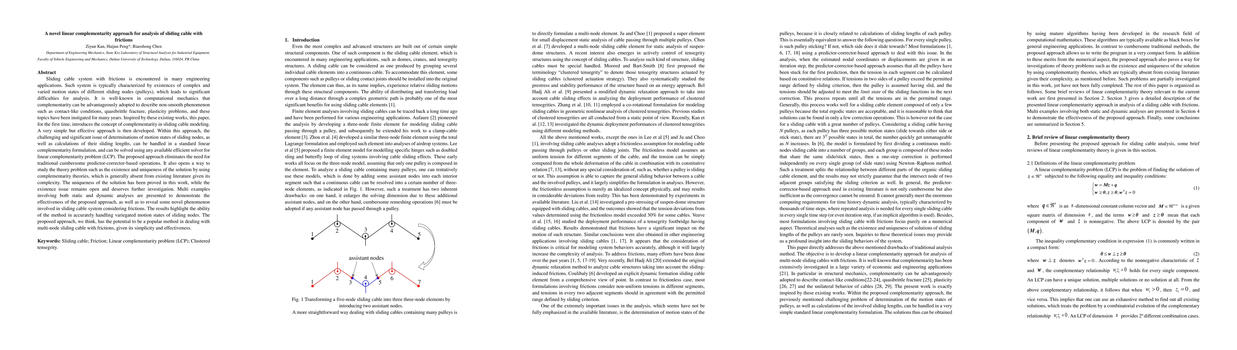 Sliding cable system with frictions is encountered in many engineering applications. Such system is typically characterized by existences of complex and varied motion states of different sliding nodes (pulleys), which leads to significant difficulties for analysis. A very simple but effective linear complementarity approach isdeveloped. Within this approach, the challenging and significant issue of determinations of motion states of sliding nodes, as well as calculations of their sliding lengths, can be handled in a standard linear complementarity formulation, and can be solved using any available efficient solver for linear complementarity problem (LCP). The proposed approach eliminates the need for traditional cumbersome predictor-corrector-based operations. It also opens a way to study the theory problem such as the existence and uniqueness of the solution by using complementarity theories, which is generally absent from existing literature given its complexity. The uniqueness of the solution has been proved in this work, while the existence issue remains open and deserves further investigation. Multi examples involving both static and dynamic analyses are presented to demonstrate the effectiveness of the proposed approach, as well as to reveal some novel phenomenon involved in sliding cable system considering frictions. The results highlight the ability of the method in accurately handling variegated motion states of sliding nodes. The proposed approach, we think, has the potential to be a popular method in dealing with multi-node sliding cable with frictions, given its simplicity and effectiveness.