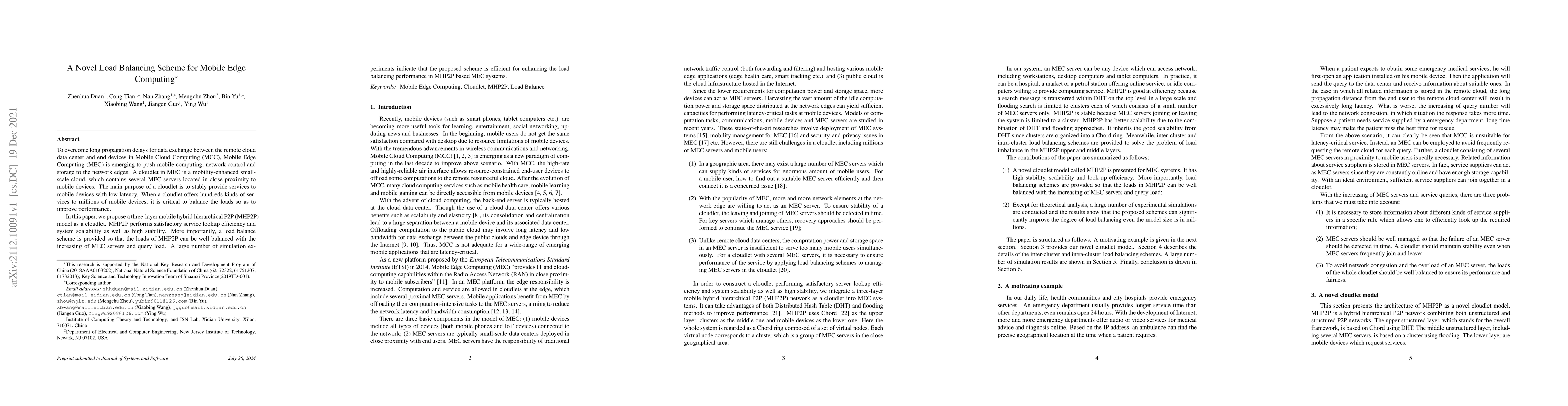 This paper proposes a three-layer mobile hybrid hierarchical P2P (MHP2P) model for Mobile Edge Computing (MEC) to reduce latency and improve service delivery. The introduced load balancing scheme effectively balances the loads across MEC servers, enhancing system performance and scalability, as demonstrated by simulation results.