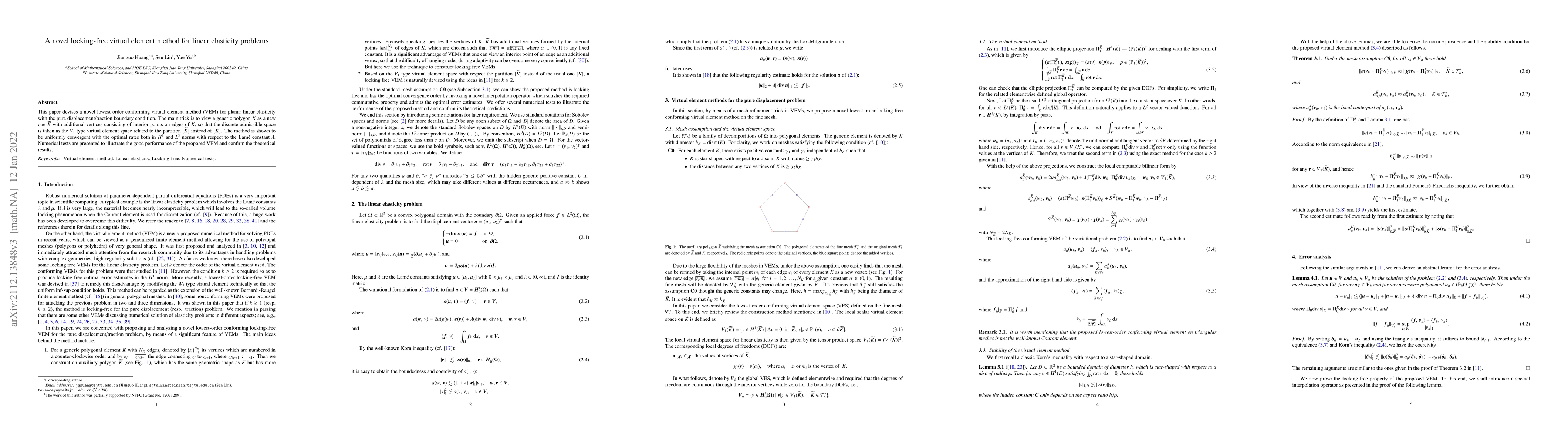 A novel locking-free virtual element method for linear elasticity problems is proposed, showing uniform convergence with optimal rates in H^1 and L^2 norms, and demonstrated through numerical tests.