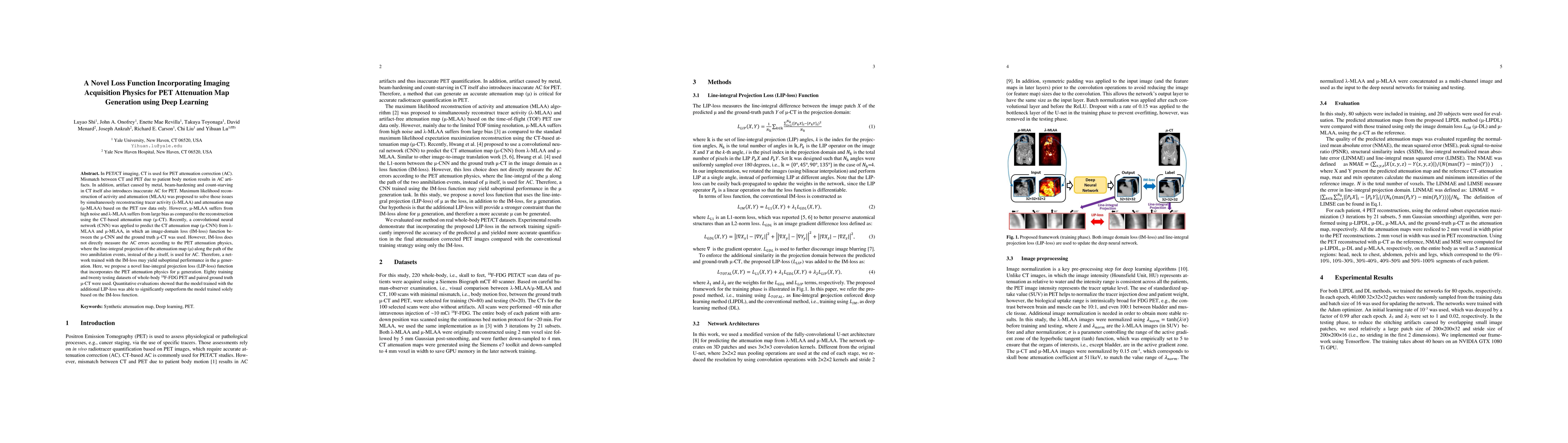 This paper proposes a novel line-integral projection loss (LIP-loss) function to improve the generation of PET attenuation maps using deep learning. The LIP-loss incorporates PET attenuation physics, addressing the limitations of the conventional image-domain loss (IM-loss) and resulting in significantly better performance compared to the IM-loss alone.