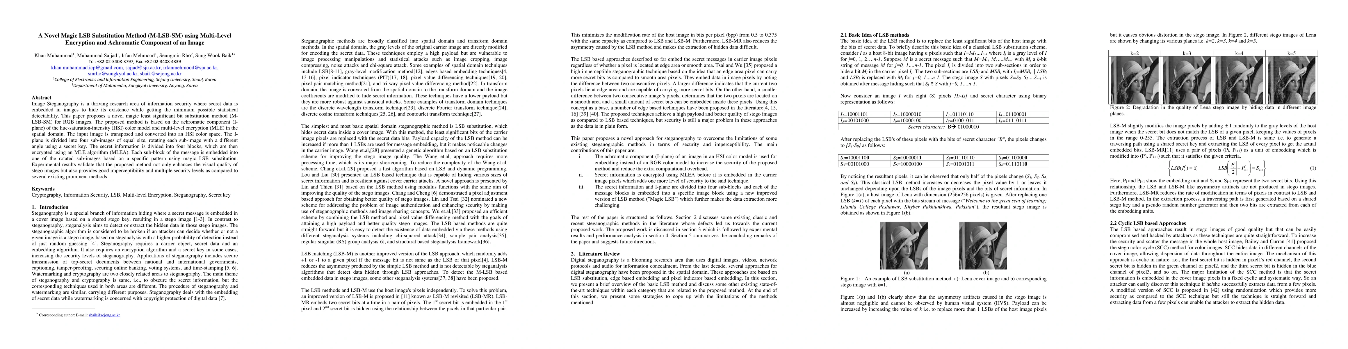 This paper introduces a novel magic least significant bit (M-LSB) substitution method for embedding secret data in RGB images using the achromatic component of the HSI color model and multi-level encryption. The method enhances visual quality and provides good imperceptibility and multiple security levels compared to existing methods.