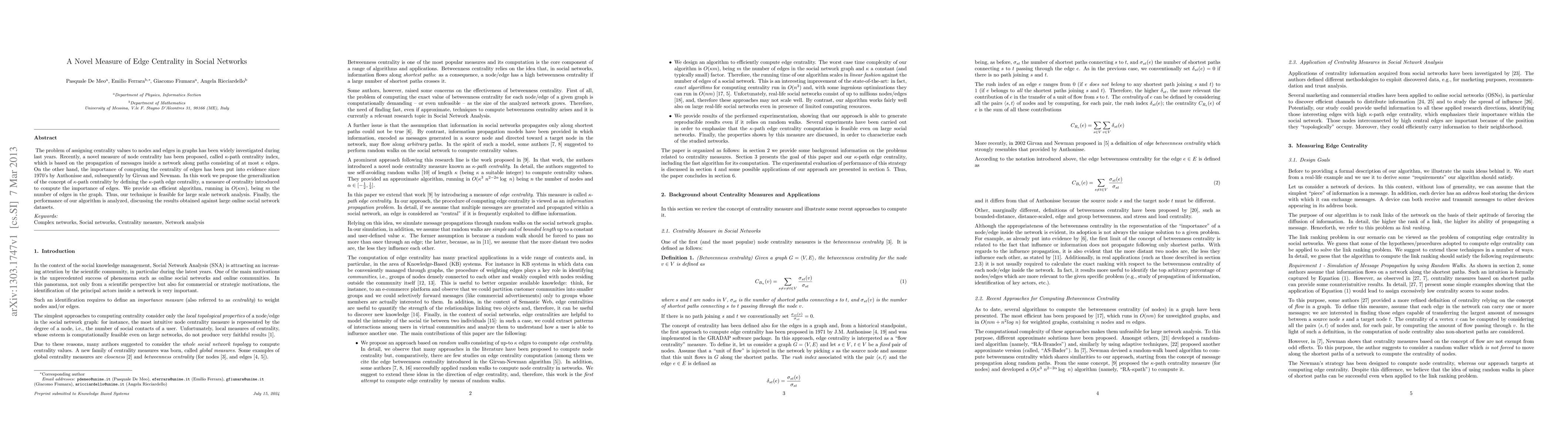 This paper introduces the k-path edge centrality measure to assess the importance of edges in social networks, extending the k-path centrality index for nodes. An efficient O(k m) algorithm is proposed, enabling large-scale network analysis, and its performance is evaluated using large online social network datasets.