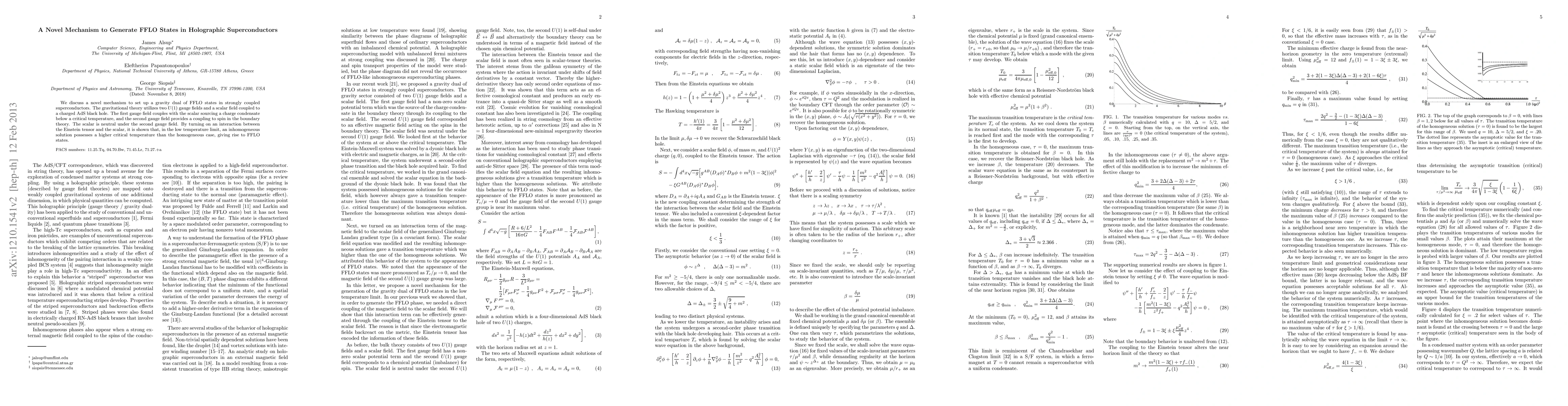 This paper proposes a novel mechanism to generate Fulde-Ferrel-Larkin-Ovchinnikov (FFLO) states in holographic superconductors using a dual gravitational theory with two U(1) gauge fields and a scalar field. It demonstrates that an interaction between the Einstein tensor and the scalar field can lead to inhomogeneous solutions with a higher critical temperature than homogeneous ones, thus establishing the FFLO state.