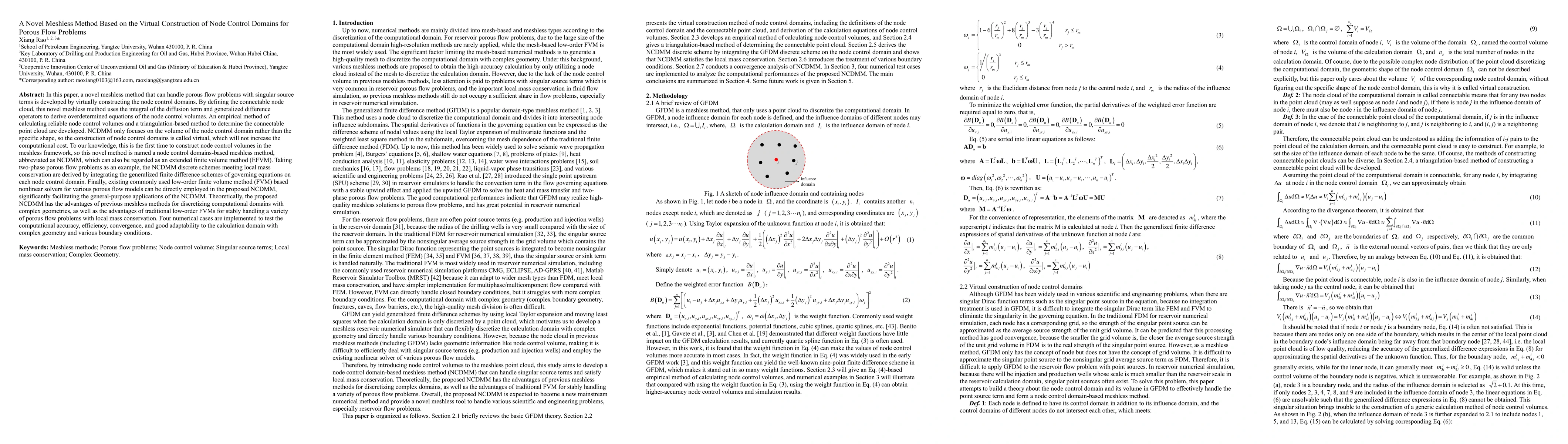 This paper introduces a novel meshless method, NCDMM, for solving porous flow problems with singular source terms by virtually constructing node control domains. The method uses integral diffusion terms and generalized difference operators, and it demonstrates computational efficiency and adaptability to complex geometries and boundary conditions.