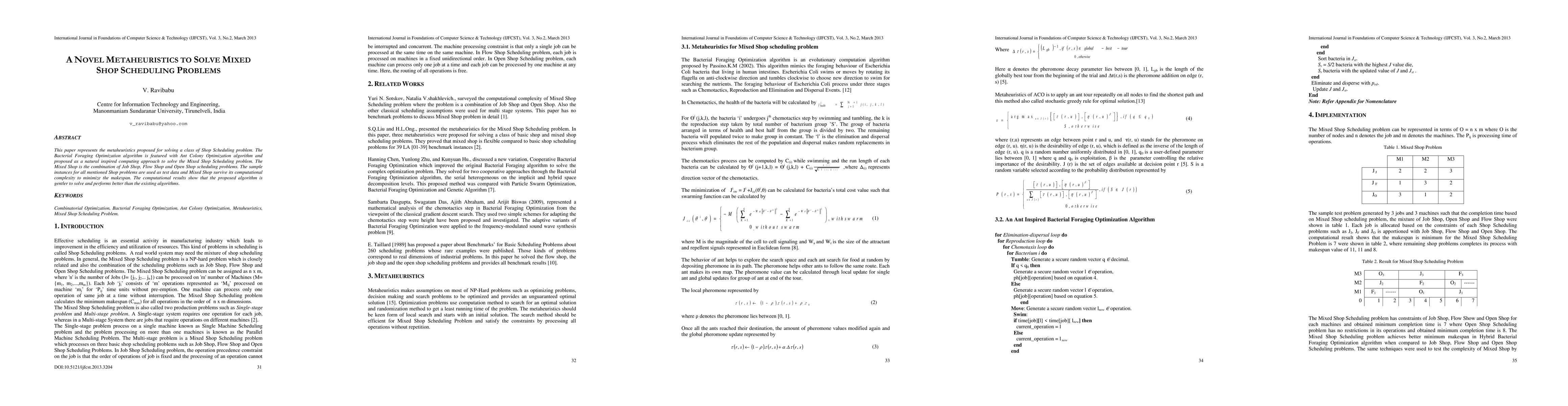 This paper introduces a novel metaheuristic combining Bacterial Foraging Optimization and Ant Colony Optimization to solve Mixed Shop Scheduling problems, demonstrating superior performance over existing algorithms in minimizing makespan. Computational results validate the effectiveness of the proposed natural inspired computing approach.