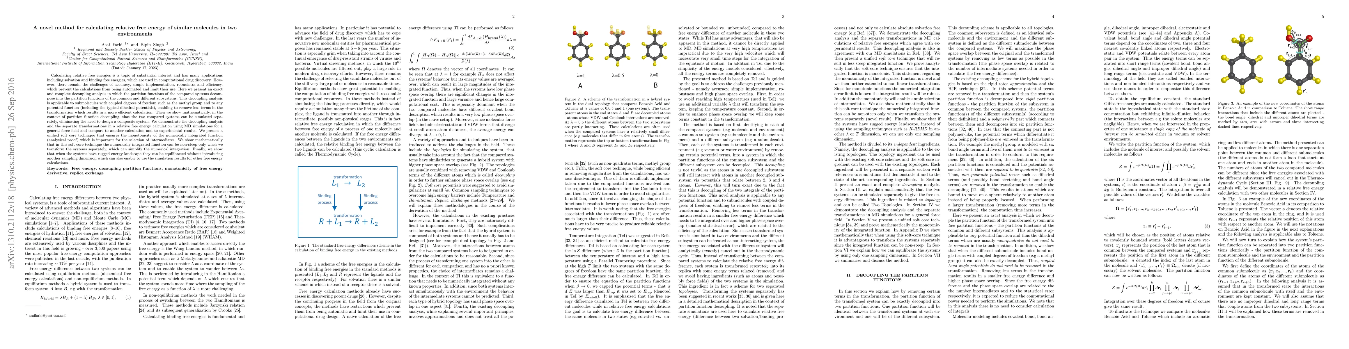 Calculating relative free energies is a topic of substantial interest and has many applications including solvation and binding free energies, which are used in computational drug discovery. However, there remain the challenges of accuracy, simple implementation, robustness and efficiency, which prevent the calculations from being automated and limit their use in computational drug discovery. Here we present an exact and complete decoupling analysis in which the partition functions of the compared systems decompose into the partition functions of the common and different subsystems. This decoupling analysis is applicable to submolecules with coupled degrees of freedom and to any potential function, enabling to remove less terms in the transformation. Then we show mathematically, in the context of partition function decoupling, that the two compared systems can be simulated separately, eliminating the need to design a composite system. We demonstrate the decoupling analysis and the separate transformations in an MD calculation of relative free energy for a general force field which is in agreement with experiments. We present a unified soft core technique that will ensure the monotonicity of the numerically integrated function. Finally, we show that when the systems have rugged energy landscape they can be equilibrated without introducing another sampling dimension. The concepts presented in the article have implications in accuracy, efficiency, simplicity and robustness of free energy calculations.
