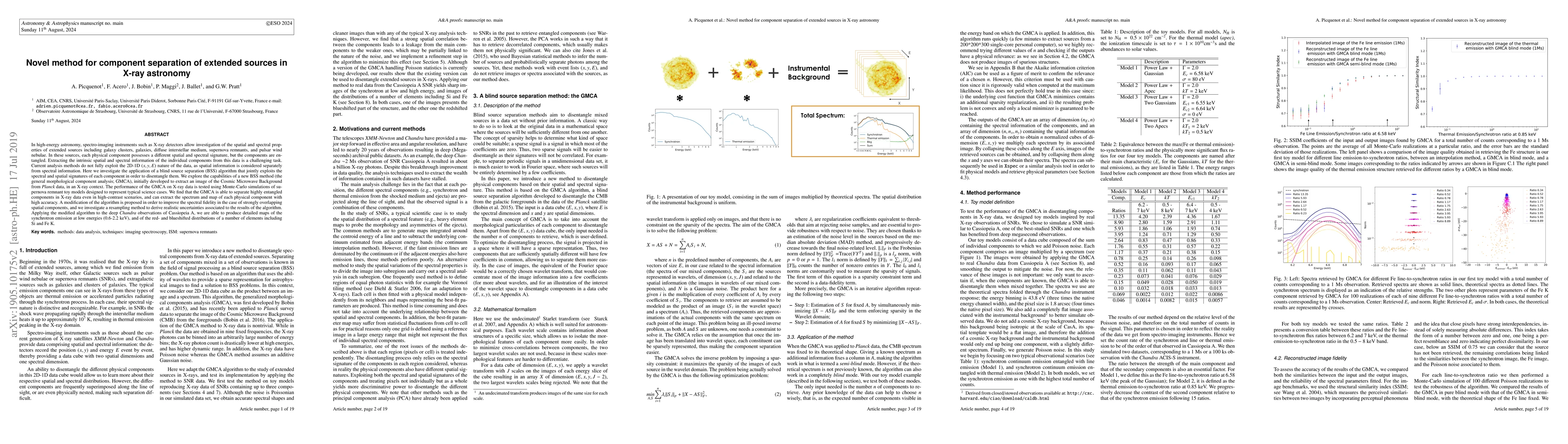 In high-energy astronomy, spectro-imaging instruments such as X-ray detectors allow investigation of the spatial and spectral properties of extended sources including galaxy clusters, galaxies, diffuse interstellar medium, supernova remnants and pulsar wind nebulae. In these sources, each physical component possesses a different spatial and spectral signature, but the components are entangled. Extracting the intrinsic spatial and spectral information of the individual components from this data is a challenging task. Current analysis methods do not fully exploit the 2D-1D (x,y,E) nature of the data, as the spatial and spectral information are considered separately. Here we investigate the application of a Blind Source Separation algorithm that jointly exploits the spectral and spatial signatures of each component in order to disentangle them. We explore the capabilities of a new BSS method (General Morphological Component Analysis; GMCA), initially developed to extract an image of the Cosmic Microwave Background from Planck data, in an X-ray context. The performance of GMCA on X-ray data is tested using Monte-Carlo simulations of supernova remnant toy models, designed to represent typical science cases. We find that GMCA is able to separate highly entangled components in X-ray data even in high contrast scenarios, and can extract with high accuracy the spectrum and map of each physical component. A modification is proposed to improve the spectral fidelity in the case of strongly overlapping spatial components, and we investigate a resampling method to derive realistic uncertainties associated to the results of the algorithm. Applying the modified algorithm to the deep Chandra observations of Cassiopeia A, we are able to produce detailed maps of the synchrotron emission at low energies (0.6-2.2 keV), and of the red/blue shifted distributions of a number of elements including Si and Fe K.