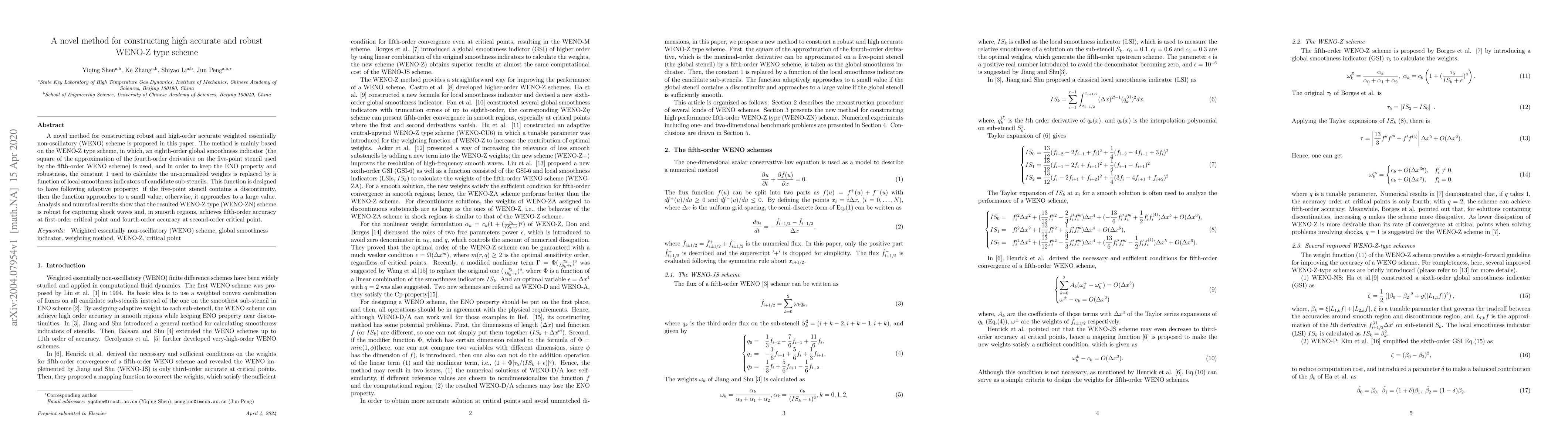 A novel method for constructing robust and high-order accurate weighted essentially non-oscillatory (WENO) scheme is proposed in this paper. The method is mainly based on the WENO-Z type scheme, in which, an eighth-order global smoothness indicator (the square of the approximation of the fourth-order derivative on the five-point stencil used by the fifth-order WENO scheme) is used, and in order to keep the ENO property and robustness, the constant 1 used to calculate the un-normalized weights is replaced by a function of local smoothness indicators of candidate sub-stencils. This function is designed to have following adaptive property: if the five-point stencil contains a discontinuity, then the function approaches to a small value, otherwise, it approaches to a large value. Analysis and numerical results show that the resulted WENO-Z type (WENO-ZN) scheme is robust for capturing shock waves and, in smooth regions, achieves fifth-order accuracy at first-order critical point and fourth-order accuracy at second-order critical point.