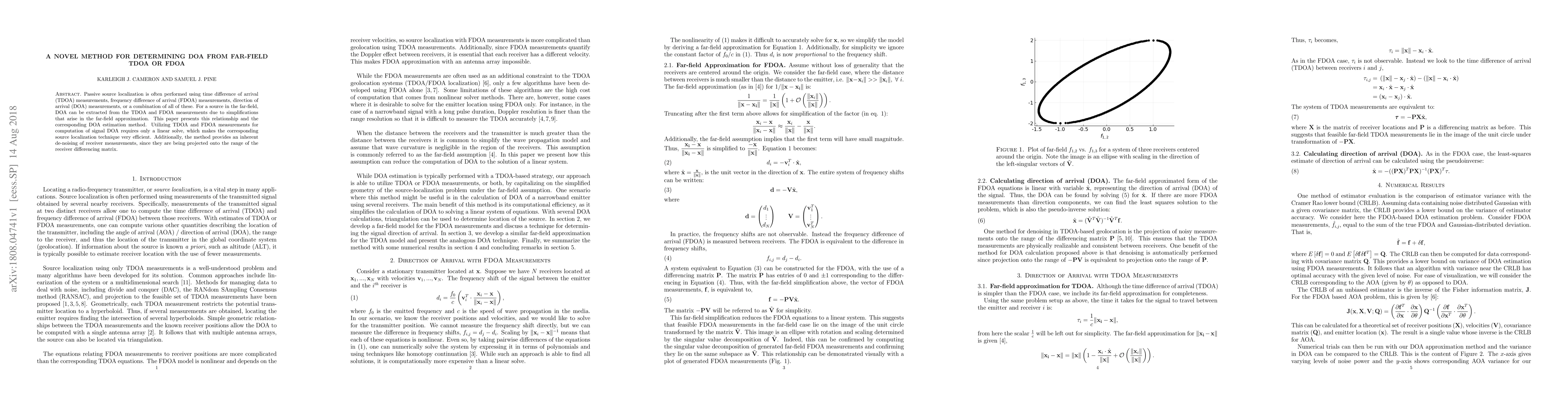 Passive source localization is often performed using time difference of arrival (TDOA) measurements, frequency difference of arrival (FDOA) measurements, direction of arrival (DOA) measurements, or a combination of all of these. For a source in the far-field, DOA can be extracted from the TDOA and FDOA measurements due to simplifications that arise in the far-field approximation. This paper presents this relationship and the corresponding DOA estimation method. Utilizing TDOA and FDOA measurements for computation of signal DOA requires only a linear solve, which makes the corresponding source localization technique very efficient. Additionally, the method provides an inherent de-noising of receiver measurements, since they are being projected onto the range of the receiver differencing matrix.
