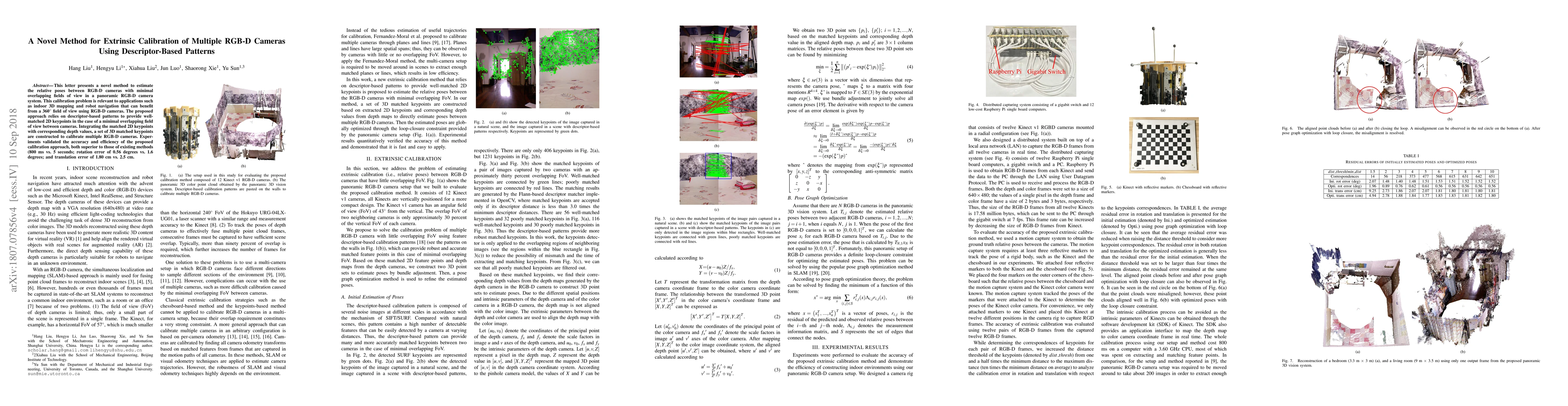 This paper introduces a novel method for extrinsic calibration of multiple RGB-D cameras using descriptor-based patterns, achieving higher accuracy and efficiency compared to existing methods. The approach constructs 3D matched keypoints from 2D descriptors and depth values to calibrate the cameras in a panoramic system.