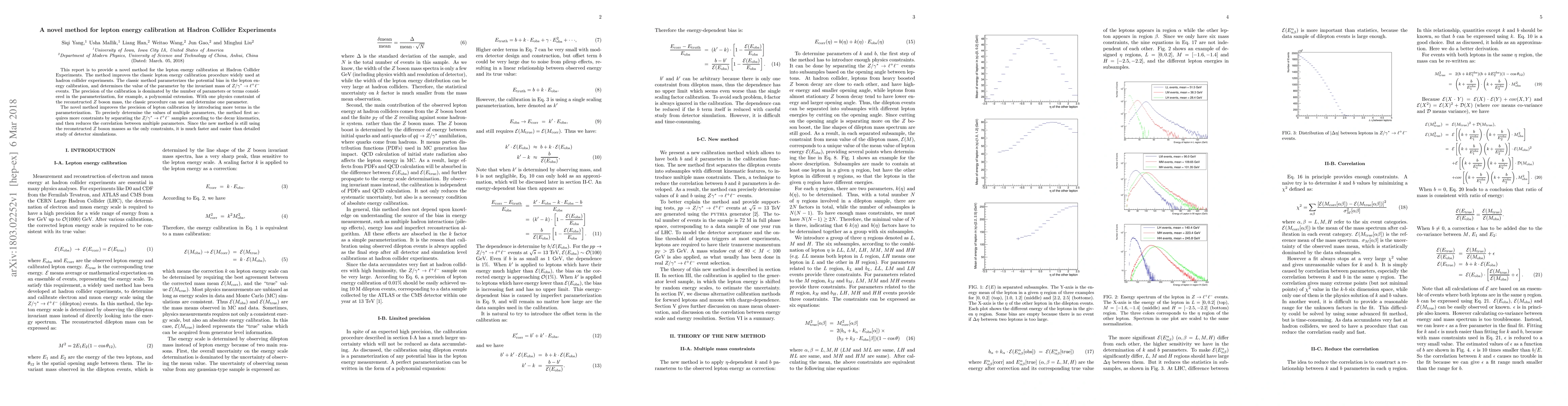 This report is to provide a novel method for the lepton energy calibration at Hadron Collider Experiments. The method improves the classic lepton energy calibration procedure widely used at hadron collider experiments. The classic method parameterizes the potential bias in the lepton en- ergy calibration, and determines the value of the parameter by the invariant mass of $Z/\gamma^*\rightarrow \ell^+\ell^-$ events. The precision of the calibration is dominated by the number of parameters or terms consid- ered in the parameterization, for example, a polynomial extension. With one physics constraint of the reconstructed Z boson mass, the classic procedure can use and determine one parameter. The novel method improves the precision of lepton calibration by introducing more terms in the parameterization. To precisely determine the values of multiple parameters, the method first ac- quires more constraints by separating the $Z/\gamma^*\rightarrow \ell^+\ell^-$ samples according to the decay kinematics, and then reduces the correlation between multiple parameters. Since the new method is still using the reconstructed Z boson masses as the only constraints, it is much faster and easier than detailed study of detector simulations.