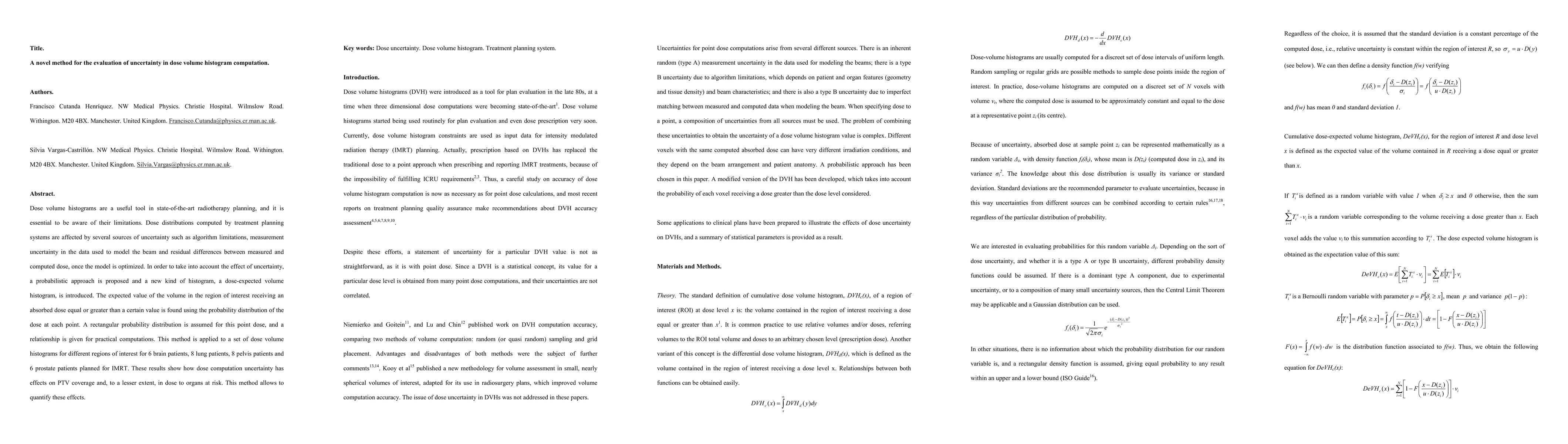This paper proposes a probabilistic method to evaluate uncertainty in dose volume histograms used in radiotherapy planning, introducing a dose-expected volume histogram to quantify uncertainties from algorithm limitations and measurement errors. Applied to various patient groups, the method demonstrates its effectiveness in assessing uncertainties' impact on target coverage and organ at risk doses.