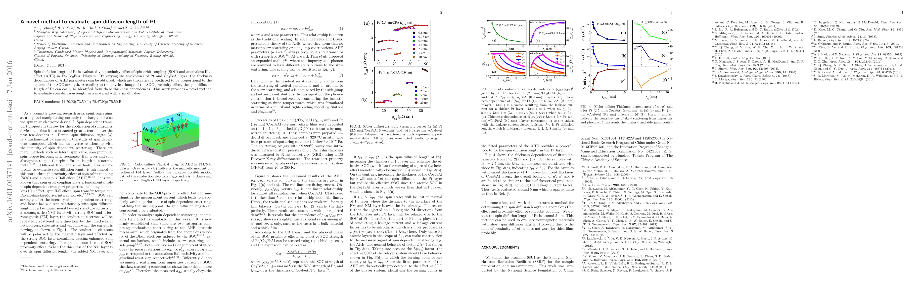 Spin diffusion length of Pt is evaluated via proximity effect of spin orbit coupling (SOC) and anomalous Hall effect (AHE) in Pt/Co2FeAl bilayers. By varying the thicknesses of Pt and Co2FeAl layer, the thickness dependences of AHE parameters can be obtained, which are theoretically predicted to be proportional to the square of the SOC strength. According to the physical image of the SOC proximity effect, the spin diffusion length of Pt can easily be identified from these thickness dependences. This work provides a novel method to evaluate spin diffusion length in a material with a small value.