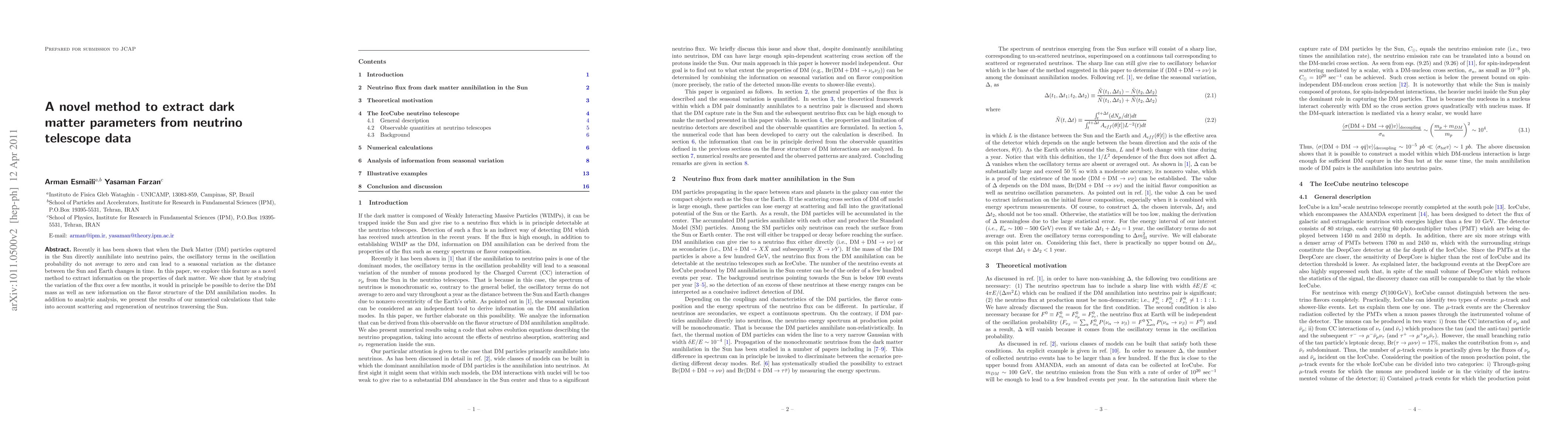 This paper proposes a new method to extract dark matter parameters from neutrino telescope data. By analyzing seasonal variations in neutrino flux caused by dark matter annihilation in the Sun, researchers can potentially determine dark matter mass and gain insights into its annihilation flavor structure.