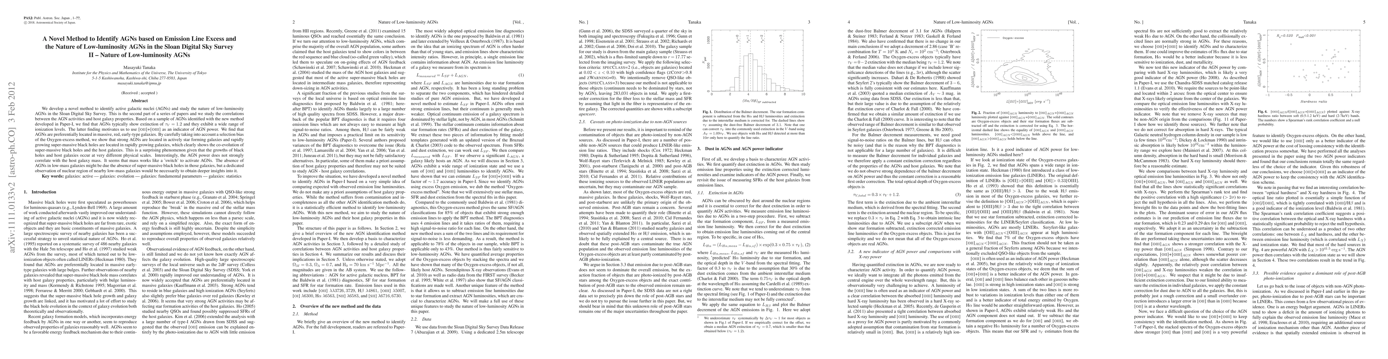 Researchers develop a method to identify active galactic nuclei (AGNs) based on emission line excess, finding that AGNs typically reside in massive, red early-type galaxies and do not strongly correlate with host galaxy mass, instead being activated by a 'switch' mechanism that might be related to the presence of super-massive black holes.