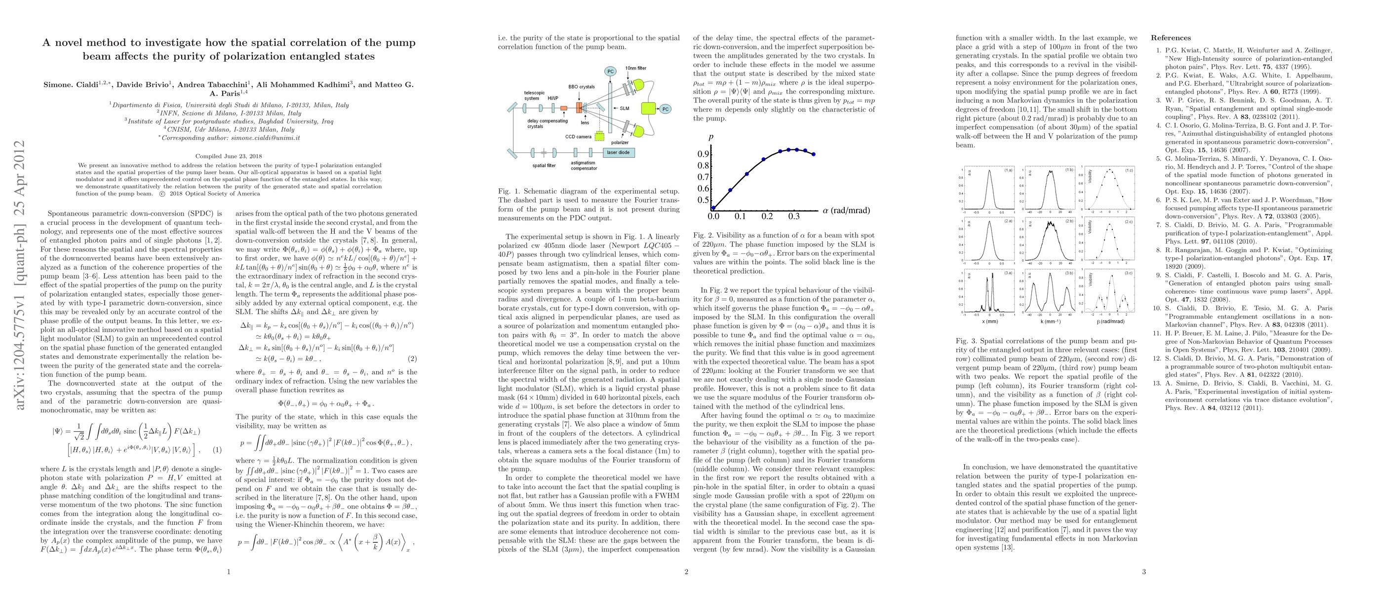 We present an innovative method to address the relation between the purity of type-I polarization entangled states and the spatial properties of the pump laser beam. Our all-optical apparatus is based on a spatial light modulator, and it offers unprecedented control on the spatial phase function of the entangled states. In this way, we demonstrate quantitatively the relation between the purity of the generated state and spatial correlation function of the pump beam.