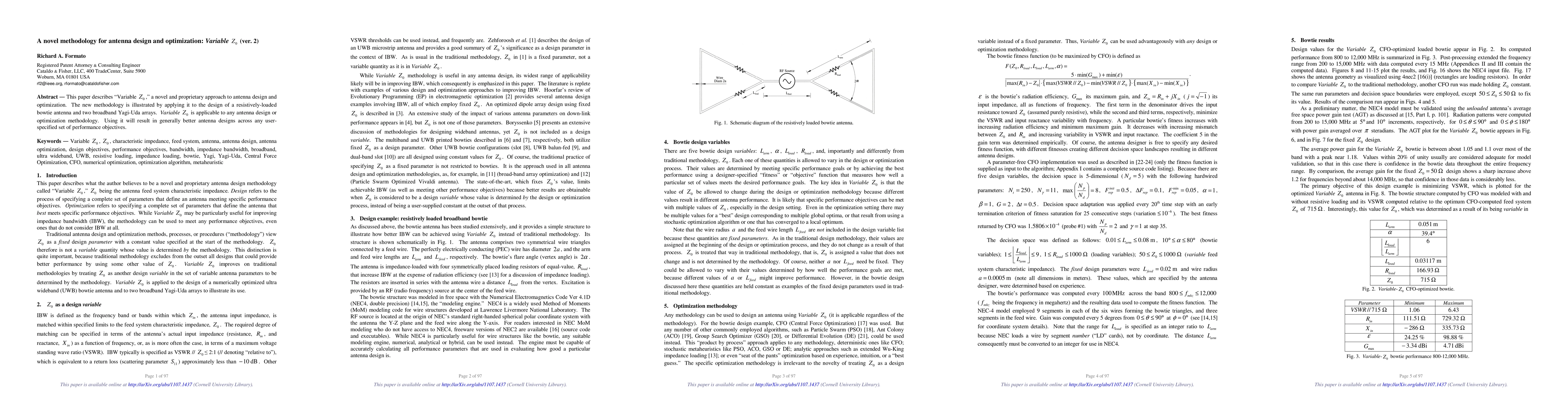 This paper introduces "Variable Zo," a new method for antenna design and optimization, demonstrated through resistively-loaded bowtie antennas and broadband Yagi-Uda arrays. This approach is expected to improve antenna designs across various performance criteria.