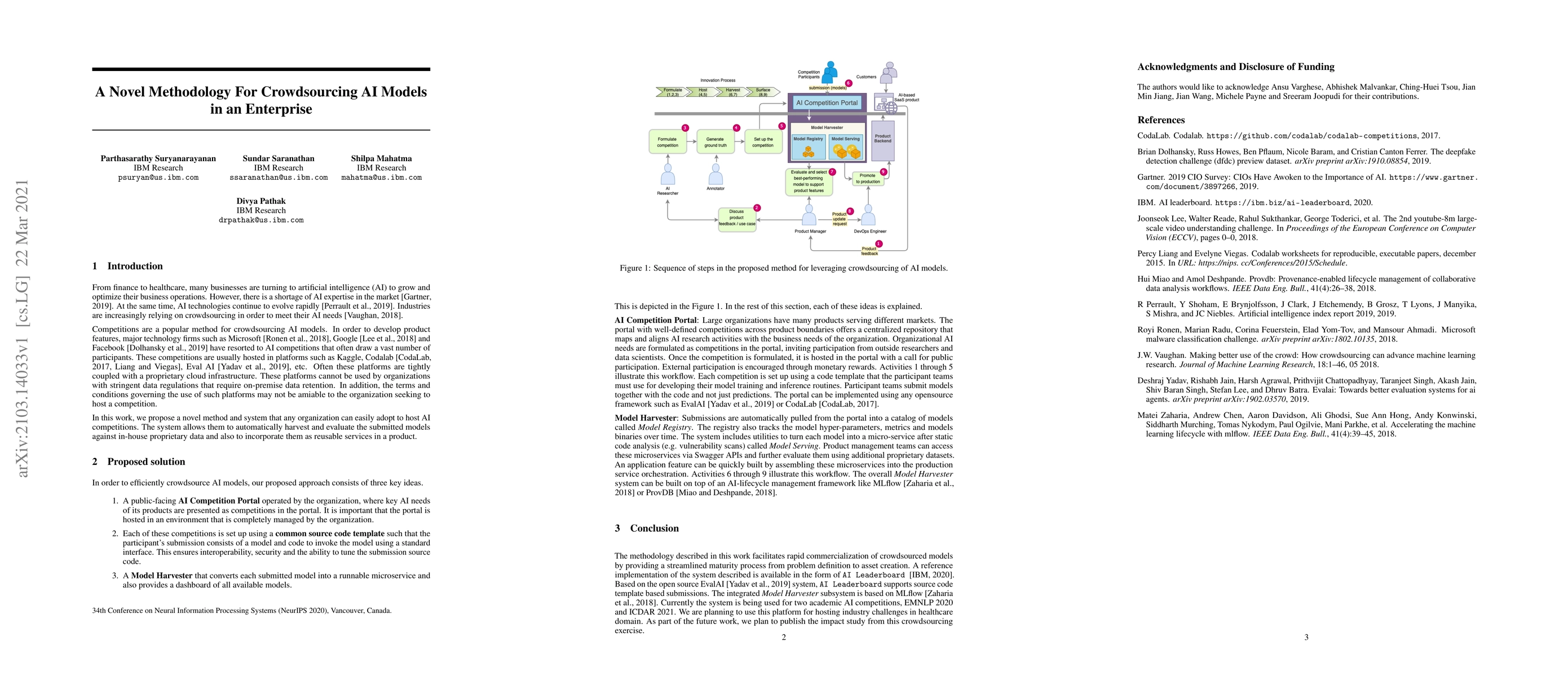 The evolution of AI is advancing rapidly, creating both challenges and opportunities for industry-community collaboration. In this work, we present a novel methodology aiming to facilitate this collaboration through crowdsourcing of AI models. Concretely, we have implemented a system and a process that any organization can easily adopt to host AI competitions. The system allows them to automatically harvest and evaluate the submitted models against in-house proprietary data and also to incorporate them as reusable services in a product.