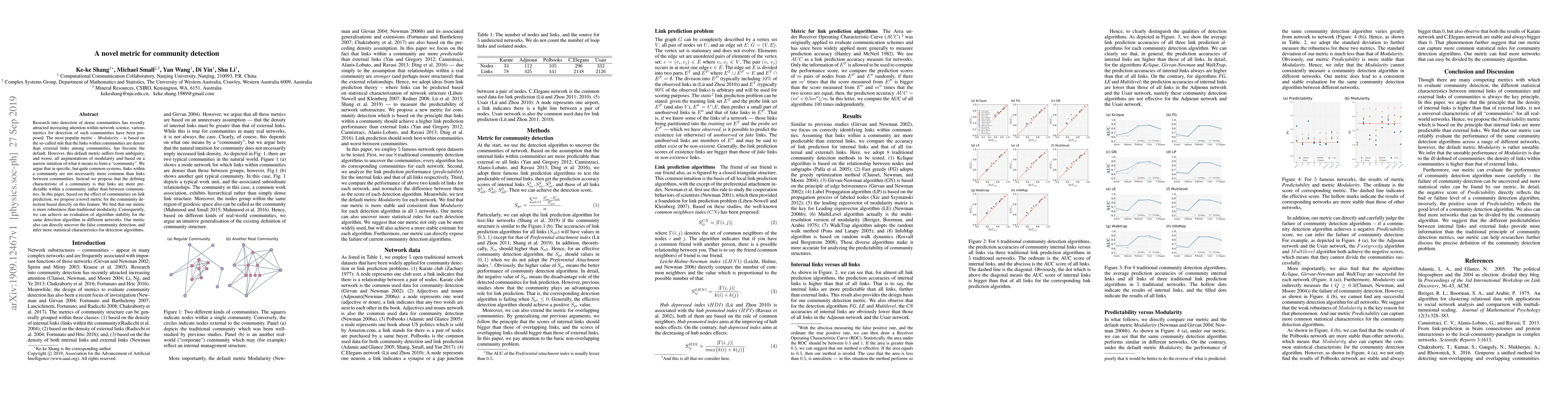 This paper proposes a novel metric for community detection based on link predictability within communities rather than density, addressing the limitations of traditional modularity. The new metric is shown to be more robust and effective in evaluating algorithm stability across different networks.
