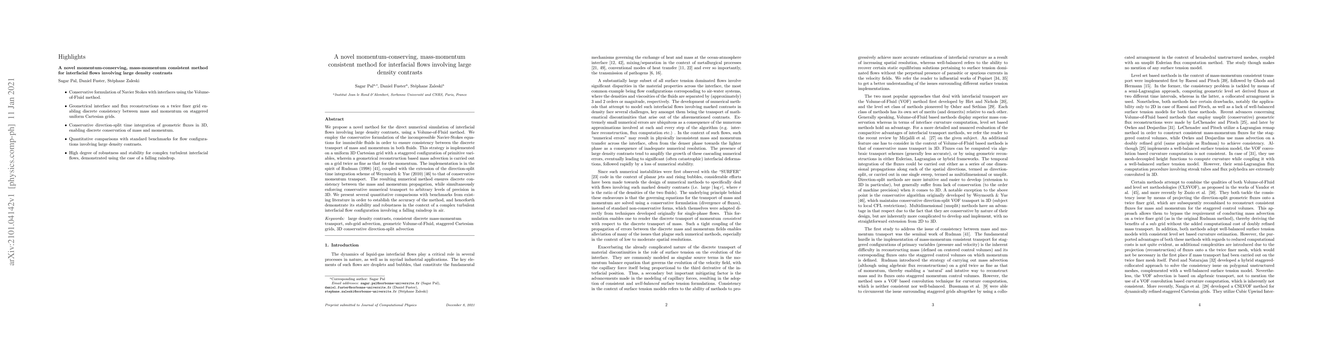 This paper proposes a novel method for simulating interfacial flows with large density contrasts using a Volume-of-Fluid approach, ensuring mass and momentum conservation through a conservative formulation of the Navier-Stokes equations. The method is demonstrated to be stable and accurate through comparisons with existing benchmarks and a complex turbulent flow scenario.