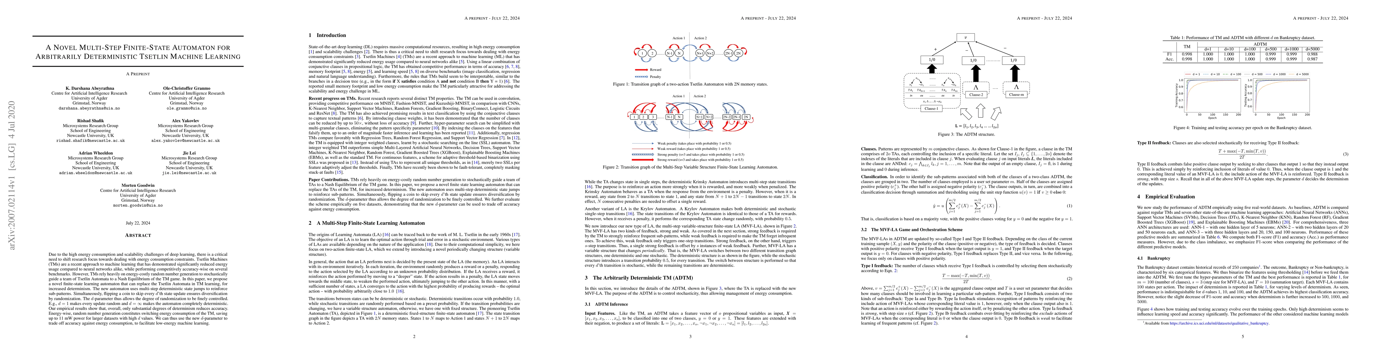 Due to the high energy consumption and scalability challenges of deep learning, there is a critical need to shift research focus towards dealing with energy consumption constraints. Tsetlin Machines (TMs) are a recent approach to machine learning that has demonstrated significantly reduced energy usage compared to neural networks alike, while performing competitively accuracy-wise on several benchmarks. However, TMs rely heavily on energy-costly random number generation to stochastically guide a team of Tsetlin Automata to a Nash Equilibrium of the TM game. In this paper, we propose a novel finite-state learning automaton that can replace the Tsetlin Automata in TM learning, for increased determinism. The new automaton uses multi-step deterministic state jumps to reinforce sub-patterns. Simultaneously, flipping a coin to skip every $d$'th state update ensures diversification by randomization. The $d$-parameter thus allows the degree of randomization to be finely controlled. E.g., $d=1$ makes every update random and $d=\infty$ makes the automaton completely deterministic. Our empirical results show that, overall, only substantial degrees of determinism reduces accuracy. Energy-wise, random number generation constitutes switching energy consumption of the TM, saving up to 11 mW power for larger datasets with high $d$ values. We can thus use the new $d$-parameter to trade off accuracy against energy consumption, to facilitate low-energy machine learning.