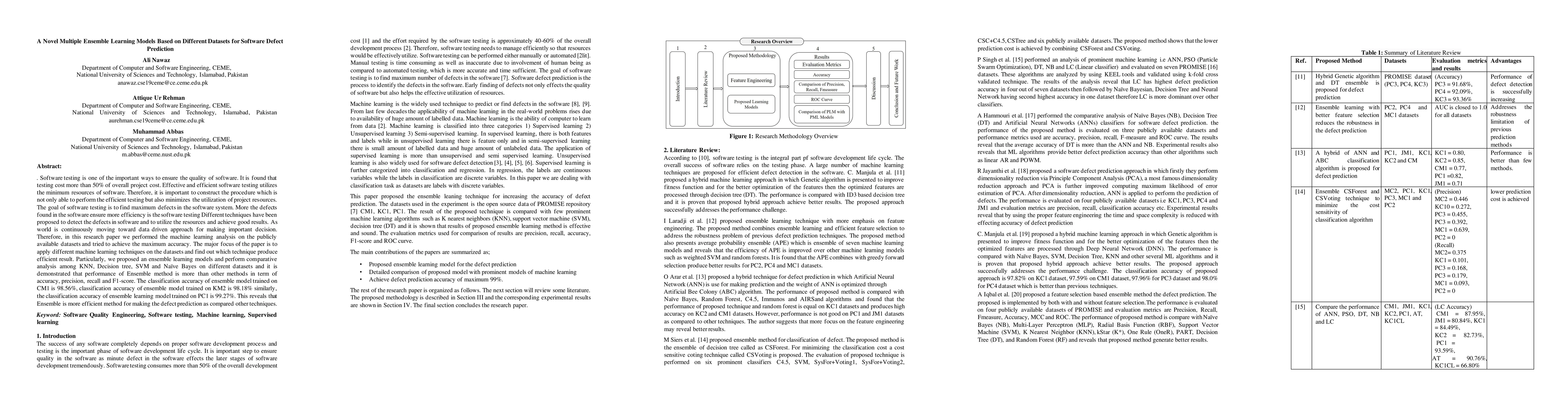 This paper explores multiple ensemble learning models for software defect prediction, comparing KNN, Decision Tree, SVM, and Naive Bayes on various datasets. The results show that ensemble methods significantly outperform individual techniques in terms of accuracy, precision, recall, and F1-score, with accuracies of 98.56%, 98.18%, and 99.27% on CM1, KM2, and PC1 datasets respectively, indicating their efficiency in resource utilization.
