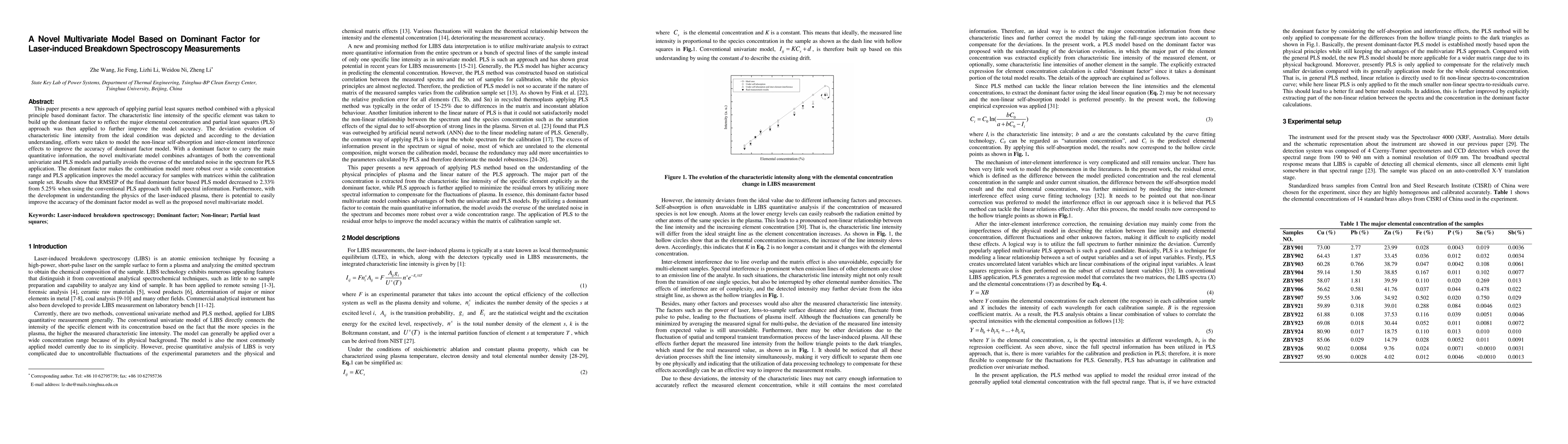 A new model combining partial least squares with a dominant factor improves laser-induced breakdown spectroscopy accuracy, reducing RMSEP from 5.25% to 2.33%.