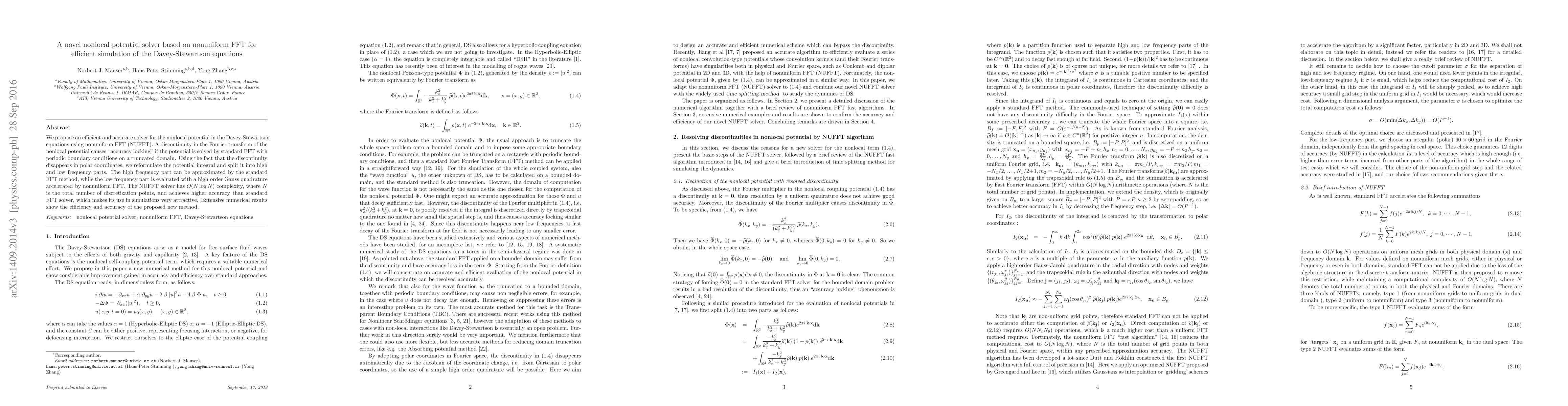 This paper proposes an efficient solver for the nonlocal potential in the Davey-Stewartson equation using nonuniform FFT (NUFFT) to overcome accuracy issues with standard FFT. The method splits the potential integral into high and low frequency parts, achieving $O(N\log N)$ complexity and higher accuracy.