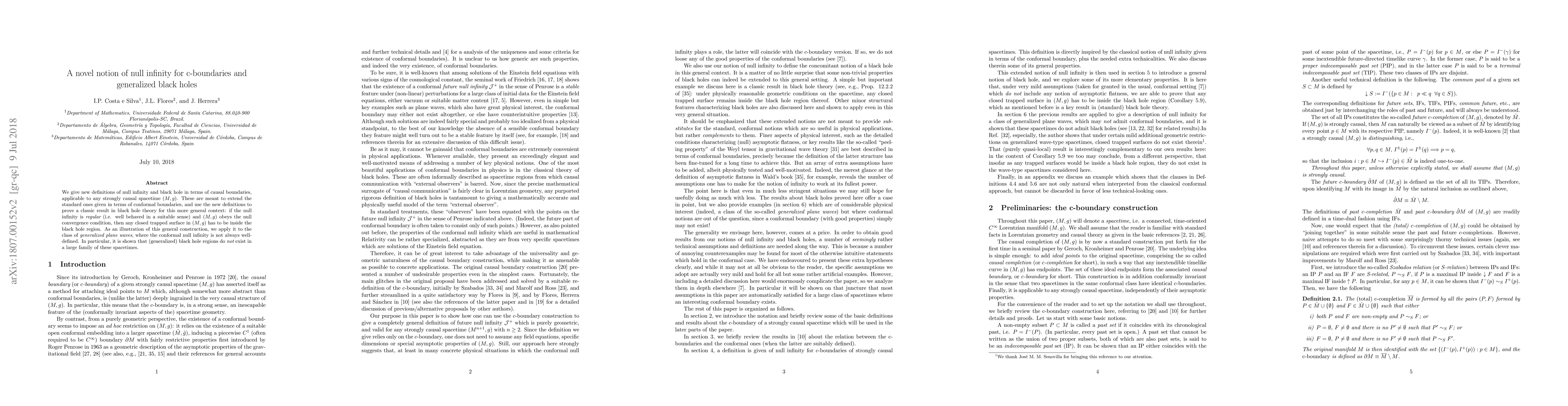 We give new definitions of null infinity and black hole in terms of causal boundaries, applicable to any strongly causal spacetime $(M,g)$. These are meant to extend the standard ones given in terms of conformal boundaries, and use the new definitions to prove a classic result in black hole theory for this more general context: if the null infinity is regular (i.e. well behaved in a suitable sense) and $(M,g)$ obeys the null convergence condition, then any closed trapped surface in $(M,g)$ has to be inside the black hole region. As an illustration of this general construction, we apply it to the class of generalized plane waves, where the conformal null infinity is not always well-defined. In particular, it is shown that (generalized) black hole regions do not exist in a large family of these spacetimes.
