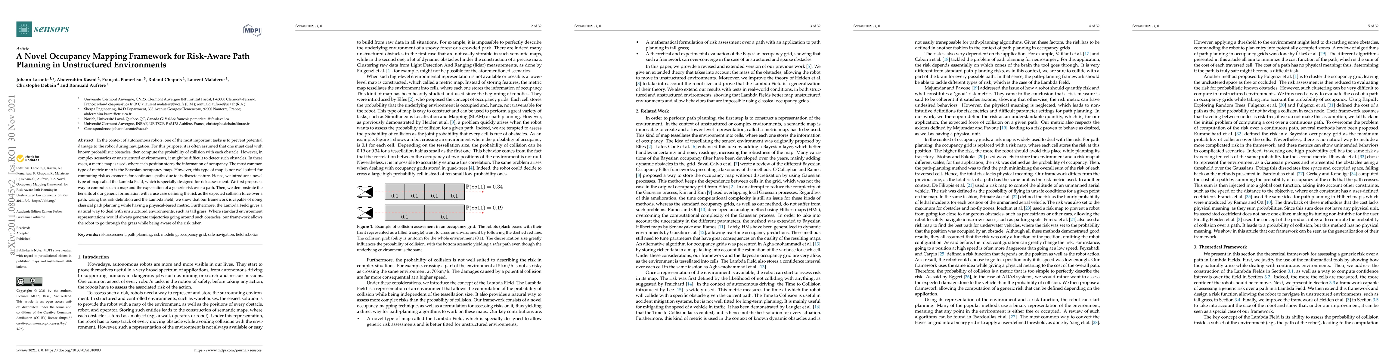 In the context of autonomous robots, one of the most important tasks is to prevent potential damage to the robot during navigation. For this purpose, it is often assumed that one must deal with known probabilistic obstacles, then compute the probability of collision with each obstacle. However, in complex scenarios or unstructured environments, it might be difficult to detect such obstacles. In these cases, a metric map is used, where each position stores the information of occupancy. The most common type of metric map is the Bayesian occupancy map. However, this type of map is not well suited for computing risk assessments for continuous paths due to its discrete nature. Hence, we introduce a novel type of map called the Lambda Field, which is specially designed for risk assessment. We first propose a way to compute such a map and the expectation of a generic risk over a path. Then, we demonstrate the benefits of our generic formulation with a use case defining the risk as the expected collision force over a path. Using this risk definition and the Lambda Field, we show that our framework is capable of doing classical path planning while having a physical-based metric. Furthermore, the Lambda Field gives a natural way to deal with unstructured environments, such as tall grass. Where standard environment representations would always generate trajectories going around such obstacles, our framework allows the robot to go through the grass while being aware of the risk taken.