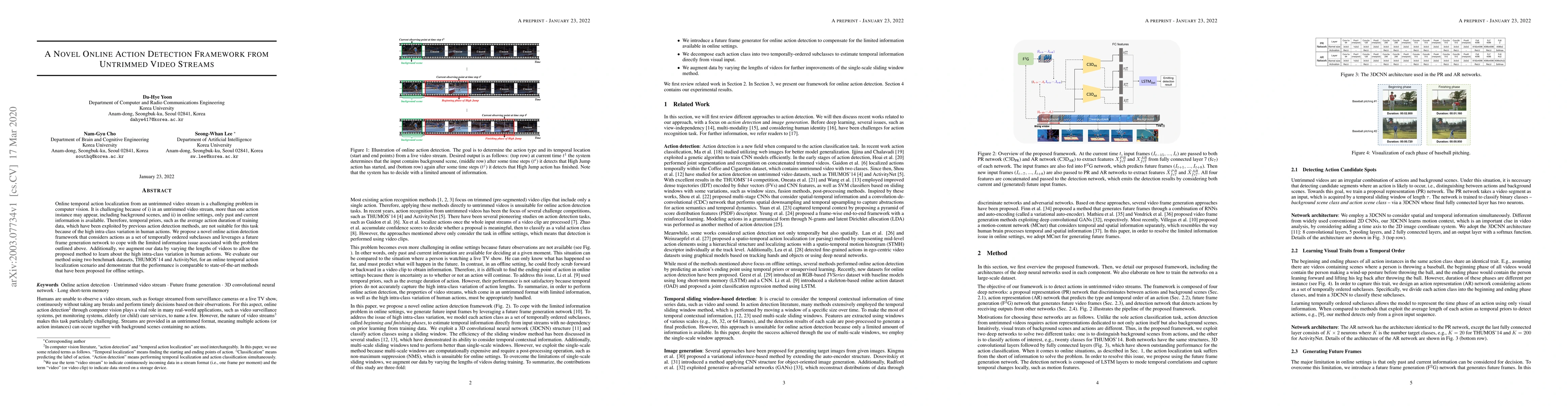 This paper introduces a novel online action detection framework for untrimmed video streams, addressing the challenge of high intra-class variation in human actions. The proposed method leverages a future frame generation network to enhance temporal action localization in online settings, achieving performance comparable to offline state-of-the-art methods.