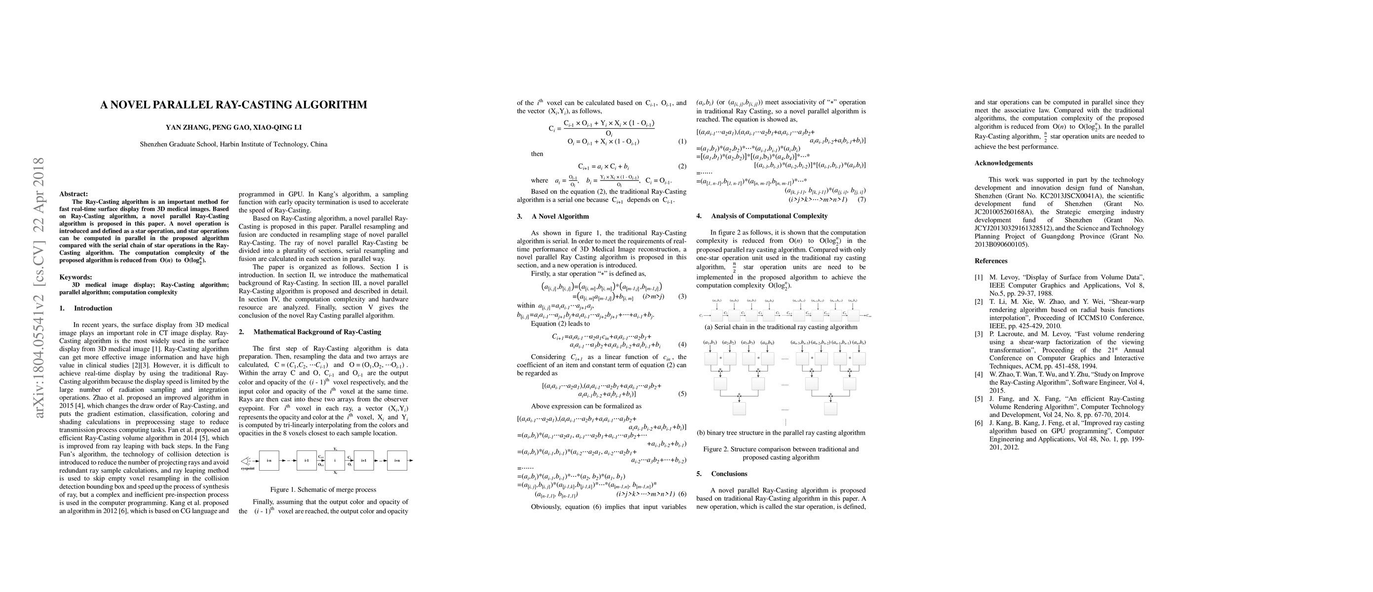 The Ray-Casting algorithm is an important method for fast real-time surface display from 3D medical images. Based on the Ray-Casting algorithm, a novel parallel Ray-Casting algorithm is proposed in this paper. A novel operation is introduced and defined as a star operation, and star operations can be computed in parallel in the proposed algorithm compared with the serial chain of star operations in the Ray-Casting algorithm. The computation complexity of the proposed algorithm is reduced from $O(n)$ to $O(\log^n_2)$.