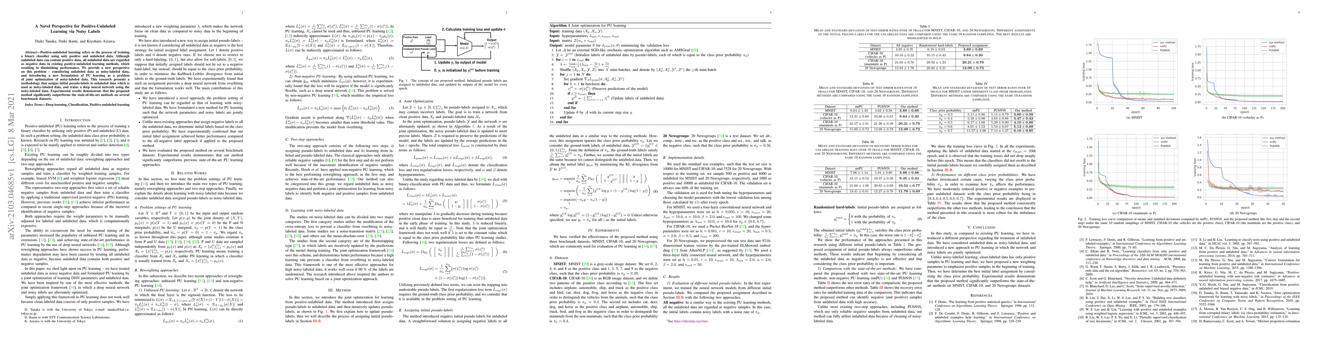 This paper proposes a novel approach to positive-unlabeled learning by treating unlabeled data as noisy labels, introducing a joint optimization framework. The method assigns pseudo-labels to unlabeled data and trains a deep neural network, achieving superior performance compared to existing methods on benchmark datasets.