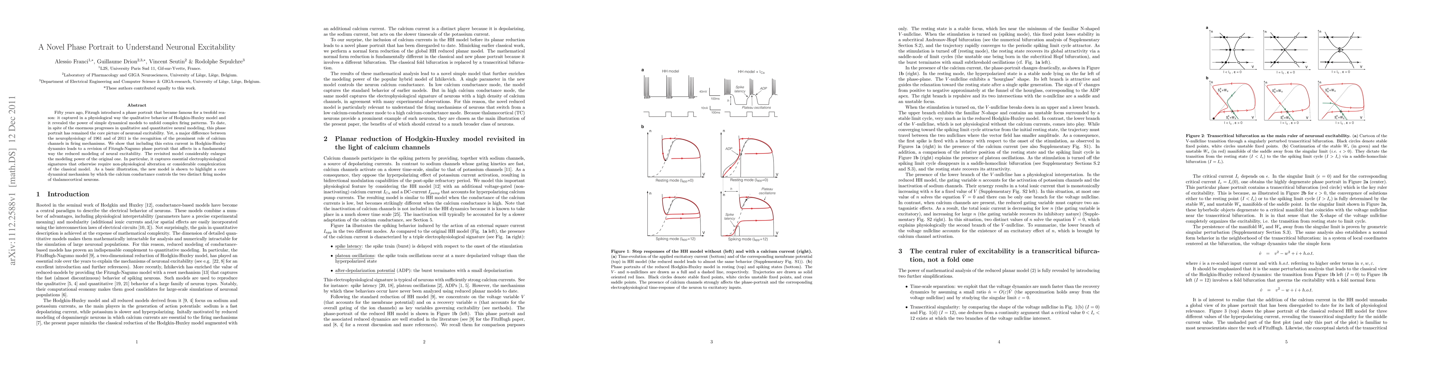 Fifty years ago, Fitzugh introduced a phase portrait that became famous for a twofold reason: it captured in a physiological way the qualitative behavior of Hodgkin-Huxley model and it revealed the power of simple dynamical models to unfold complex firing patterns. To date, in spite of the enormous progresses in qualitative and quantitative neural modeling, this phase portrait has remained the core picture of neuronal excitability. Yet, a major difference between the neurophysiology of 1961 and of 2011 is the recognition of the prominent role of calcium channels in firing mechanisms. We show that including this extra current in Hodgkin-Huxley dynamics leads to a revision of Fitzugh-Nagumo phase portrait that affects in a fundamental way the reduced modeling of neural excitability. The revisited model considerably enlarges the modeling power of the original one. In particular, it captures essential electrophysiological signatures that otherwise require non-physiological alteration or considerable complexication of the classical model. As a basic illustration, the new model is shown to highlight a core dynamical mechanism by which the calcium conductance controls the two distinct firing modes of thalamocortical neurons.