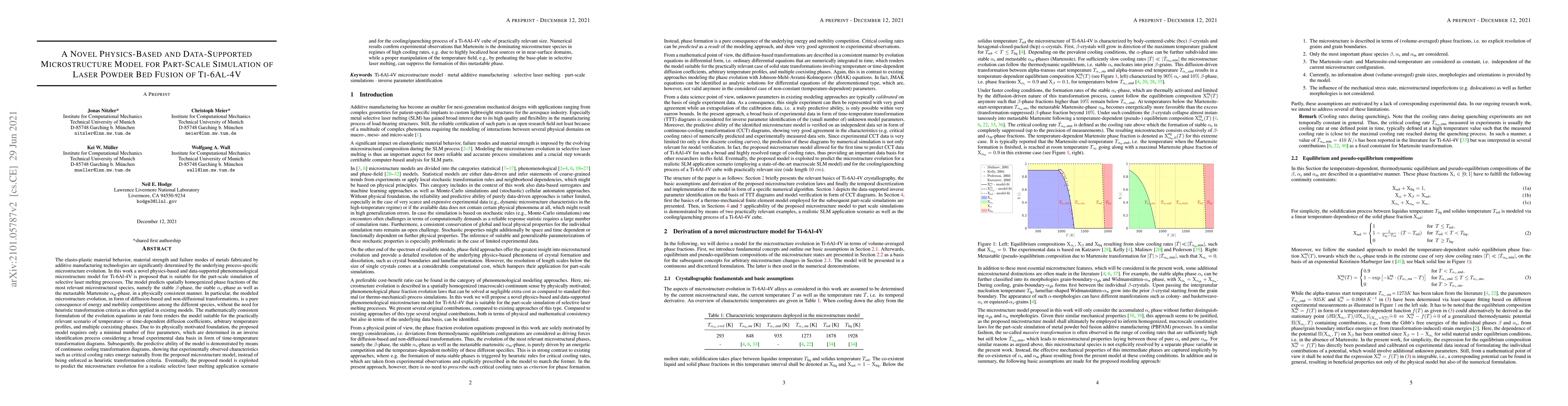 This paper proposes a novel physics-based and data-supported microstructure model for simulating the laser powder bed fusion process of Ti-6Al-4V. The model predicts phase fractions of $\beta$-phase, $\alpha_{\text{s}}$-phase, and $\alpha_{\text{m}}$-phase, driven by energy and mobility competitions, without heuristic criteria, and is validated against experimental data.