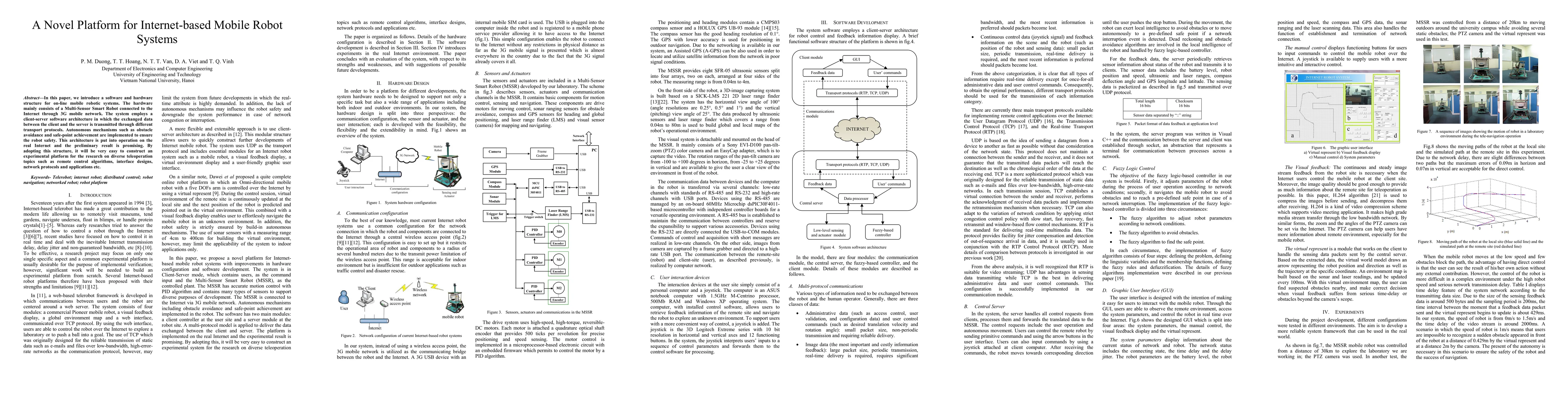 This paper presents an innovative platform combining hardware and software for online mobile robotic systems, featuring a Multi-Sensor Smart Robot connected via 3G. The system employs a client-server architecture with autonomous features like obstacle avoidance, and initial results show promise for future tele-operation research.