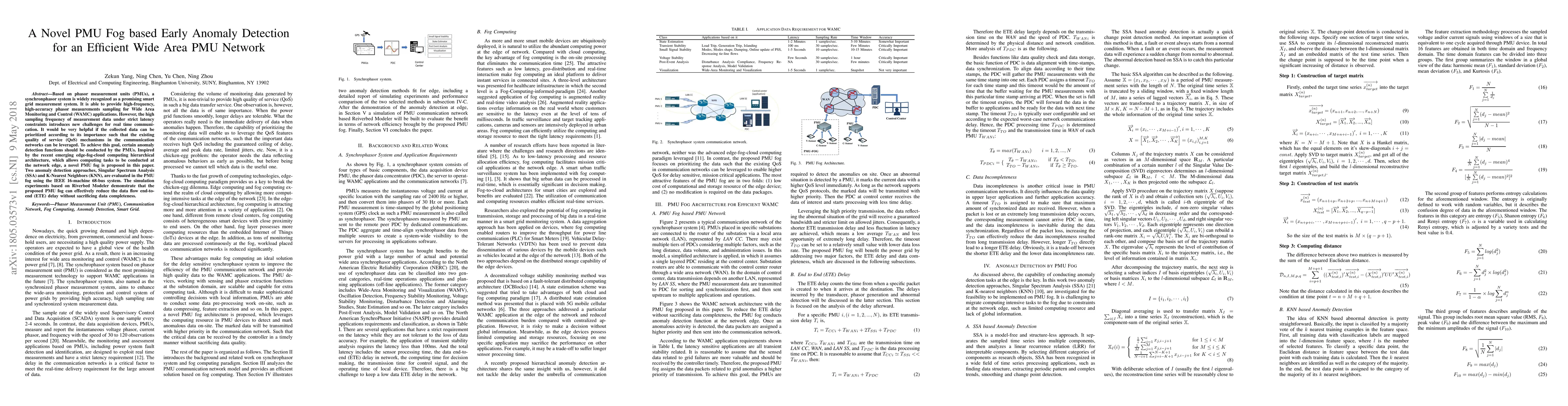 This paper proposes a novel PMU fog architecture for early anomaly detection in wide area PMU networks, utilizing Singular Spectrum Analysis and K-Nearest Neighbors methods. Simulation results show that the approach effectively reduces end-to-end delay while maintaining data completeness.