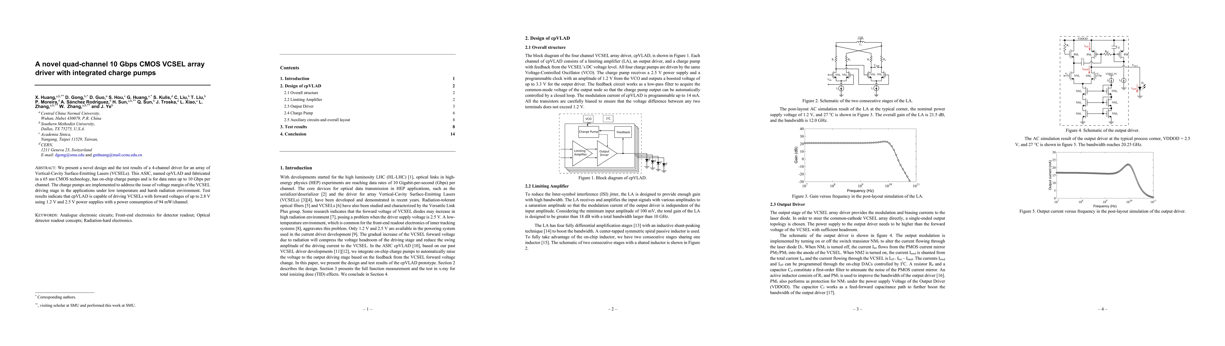 A new ASIC design, cpVLAD, has been developed to drive a 4-channel VCSEL array at 10 Gbps speeds with integrated charge pumps, improving voltage margin for low-temperature and radiation environments.