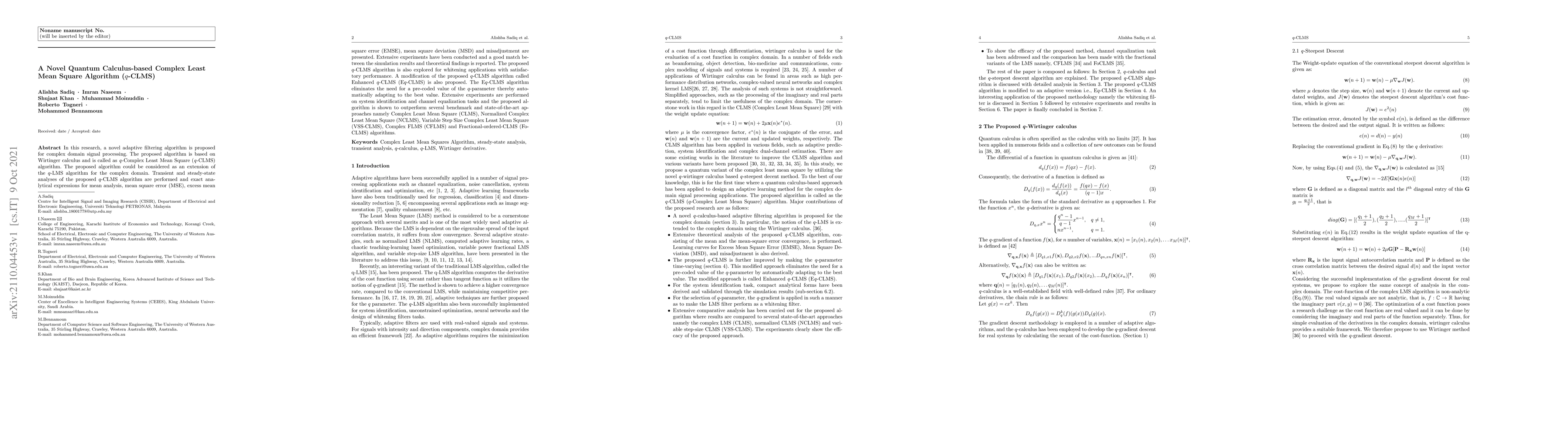In this research, a novel adaptive filtering algorithm is proposed for complex domain signal processing. The proposed algorithm is based on Wirtinger calculus and is called as q-Complex Least Mean Square (q-CLMS) algorithm. The proposed algorithm could be considered as an extension of the q-LMS algorithm for the complex domain. Transient and steady-state analyses of the proposed q-CLMS algorithm are performed and exact analytical expressions for mean analysis, mean square error (MSE), excess mean square error (EMSE), mean square deviation (MSD) and misadjustment are presented. Extensive experiments have been conducted and a good match between the simulation results and theoretical findings is reported. The proposed q-CLMS algorithm is also explored for whitening applications with satisfactory performance. A modification of the proposed q-CLMS algorithm called Enhanced $q$-CLMS (Eq-CLMS) is also proposed. The Eq-CLMS algorithm eliminates the need for a pre-coded value of the q-parameter thereby automatically adapting to the best value. Extensive experiments are performed on system identification and channel equalization tasks and the proposed algorithm is shown to outperform several benchmark and state-of-the-art approaches namely Complex Least Mean Square (CLMS), Normalized Complex Least Mean Square (NCLMS), Variable Step Size Complex Least Mean Square (VSS-CLMS), Complex FLMS (CFLMS) and Fractional-ordered-CLMS (FoCLMS) algorithms.