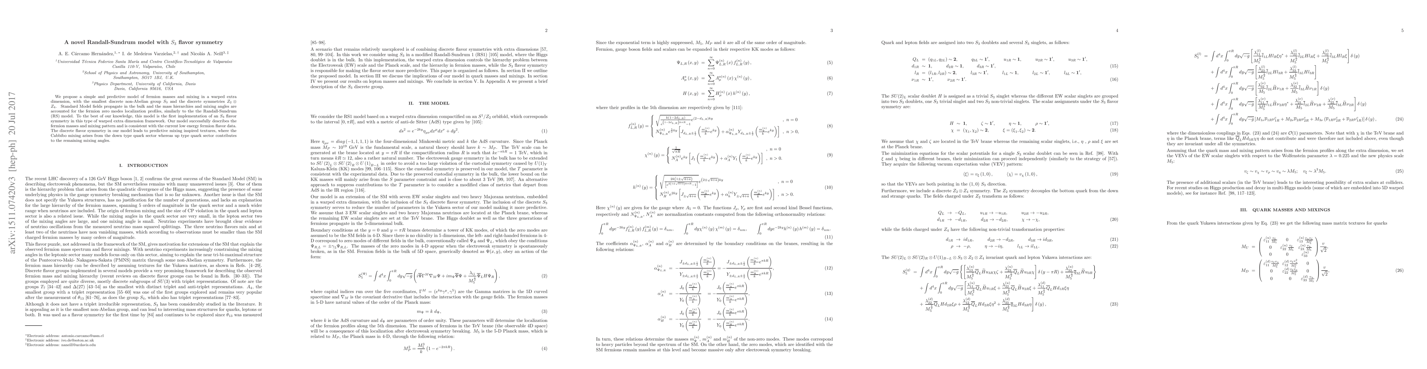This paper proposes a novel Randall-Sundrum model incorporating $S_{3}$ flavor symmetry to explain fermion masses and mixing, utilizing discrete symmetries $Z_{2}\otimes Z_{4}$. The model successfully describes observed mass hierarchies and mixing patterns, offering predictive mixing textures.