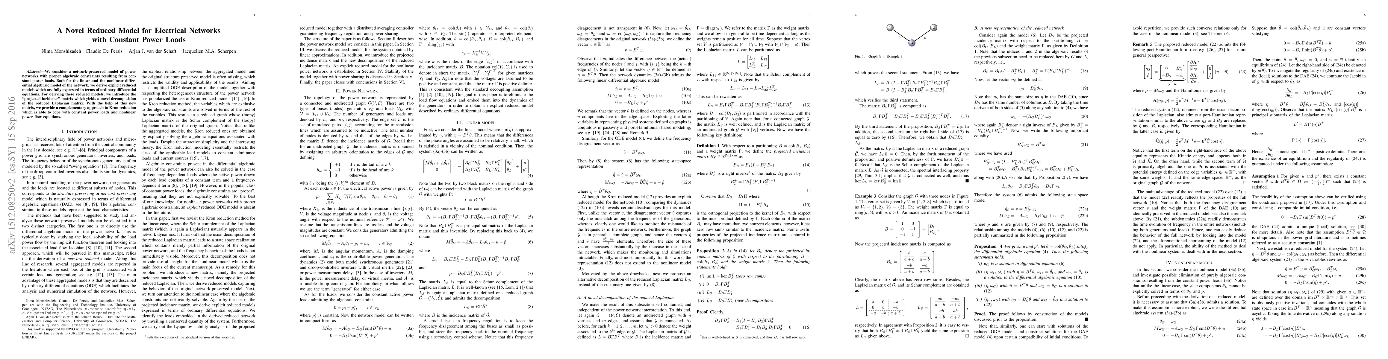 We consider a network-preserved model of power networks with proper algebraic constraints resulting from constant power loads. Both for the linear and the nonlinear differential algebraic model of the network, we derive explicit reduced models which are fully expressed in terms of ordinary differential equations. For deriving these reduced models, we introduce the "projected incidence" matrix which yields a novel decomposition of the reduced Laplacian matrix. With the help of this new matrix, we provide a complementary approach to Kron reduction which is able to cope with constant power loads and nonlinear power flow equations.