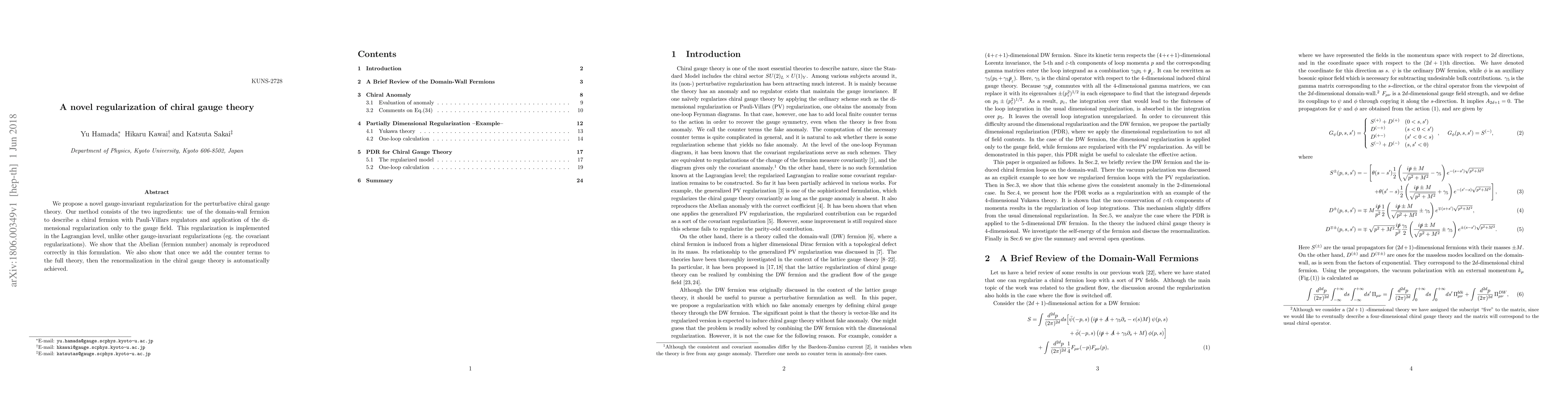 This paper proposes a novel gauge-invariant regularization for perturbative chiral gauge theory using domain-wall fermions and Pauli-Villars regulators, with dimensional regularization applied only to the gauge field. The method successfully reproduces the Abelian anomaly and achieves renormalization through added counter terms.