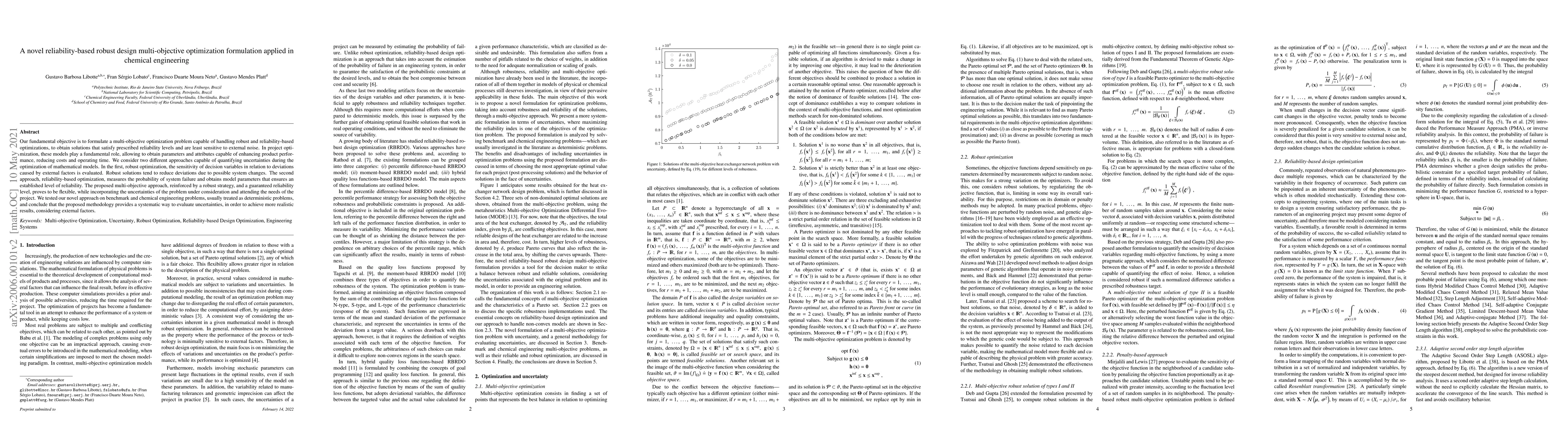 This paper proposes a novel reliability-based robust design multi-objective optimization formulation to enhance chemical engineering projects. It combines robust optimization to minimize sensitivity to external changes and reliability-based optimization to ensure system reliability, providing flexible solutions to handle uncertainties.