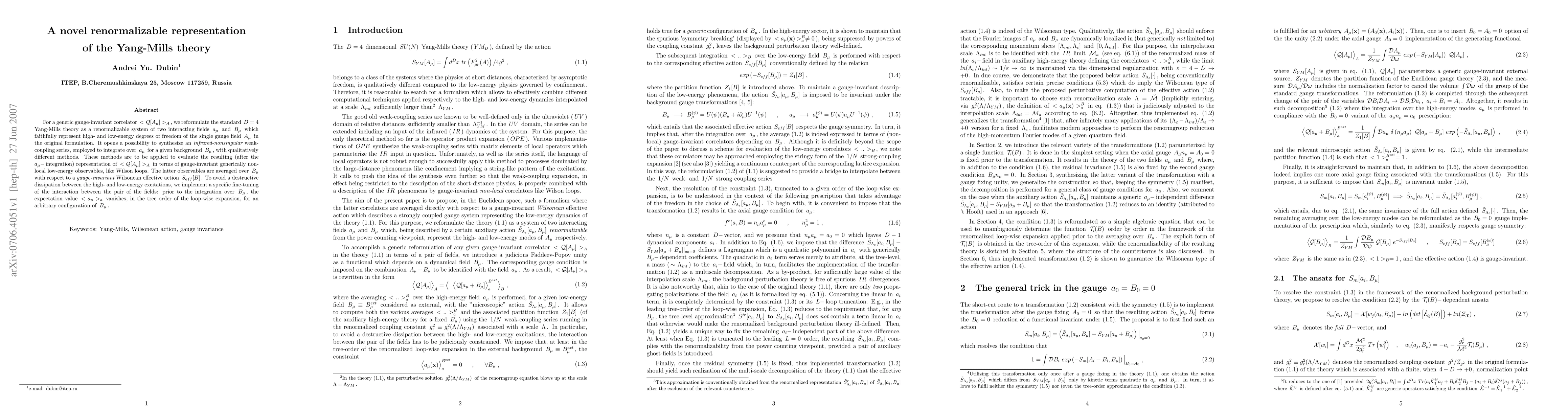 reformulate the standard D=4 Yang-Mills theory as a renormalizable system of