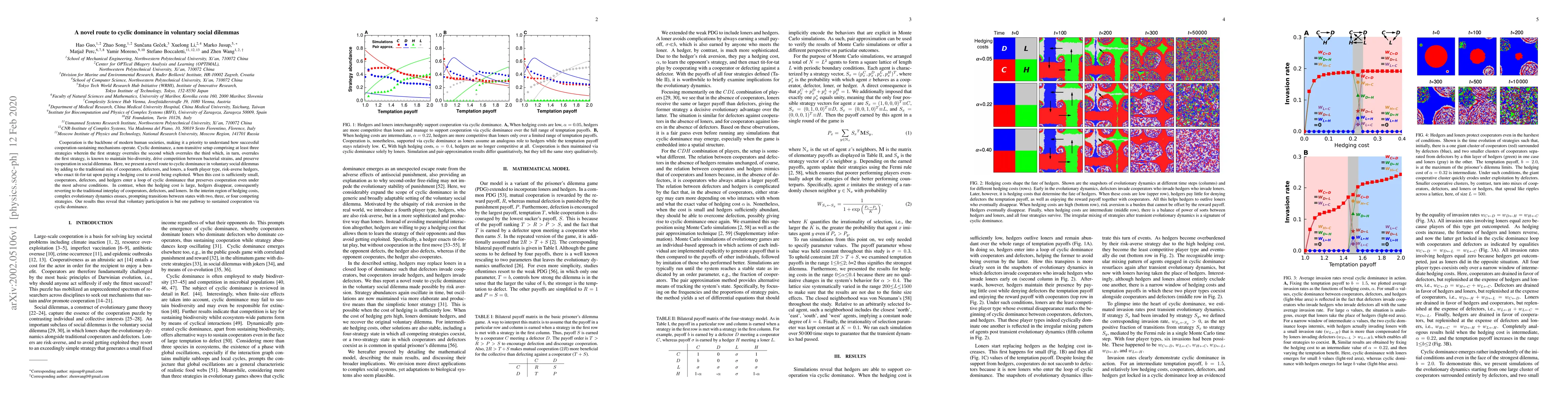 Cooperation is the backbone of modern human societies, making it a priority to understand how successful cooperation-sustaining mechanisms operate. Cyclic dominance, a non-transitive setup comprising at least three strategies wherein the first strategy overrules the second which overrules the third which, in turn, overrules the first strategy, is known to maintain bio-diversity, drive competition between bacterial strains, and preserve cooperation in social dilemmas. Here, we present a novel route to cyclic dominance in voluntary social dilemmas by adding to the traditional mix of cooperators, defectors, and loners, a fourth player type, risk-averse hedgers, who enact tit-for-tat upon paying a hedging cost to avoid being exploited. When this cost is sufficiently small, cooperators, defectors, and hedgers enter a loop of cyclic dominance that preserves cooperation even under the most adverse conditions. In contrast, when the hedging cost is large, hedgers disappear, consequently reverting to the traditional interplay of cooperators, defectors, and loners. In the interim region of hedging costs, complex evolutionary dynamics ensues, prompting transitions between states with two, three, or four competing strategies. Our results thus reveal that voluntary participation is but one pathway to sustained cooperation via cyclic dominance.
